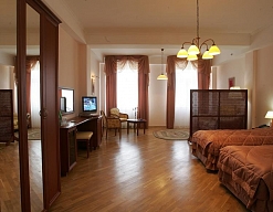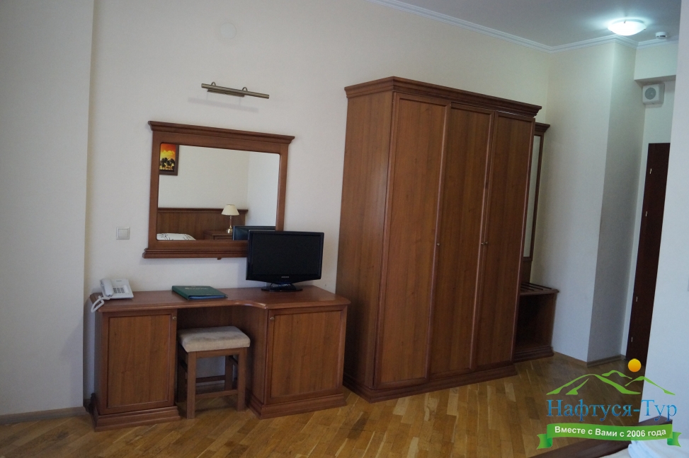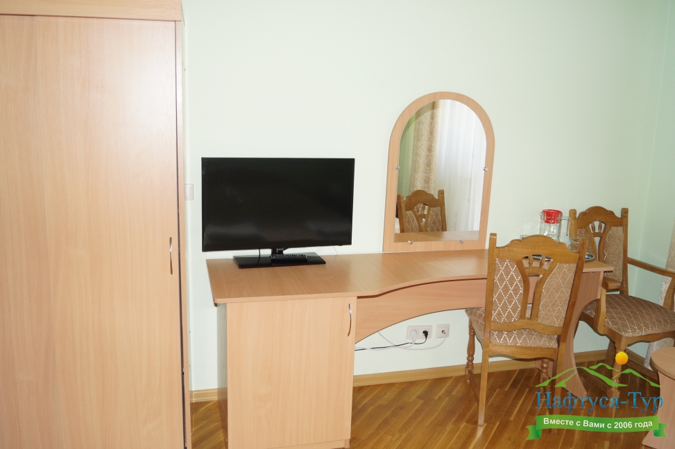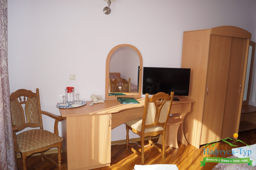 зеркало, кровати односпальные /одна двуспальная кровать, прикроватные тумбочки, стол, стулья, шкаф