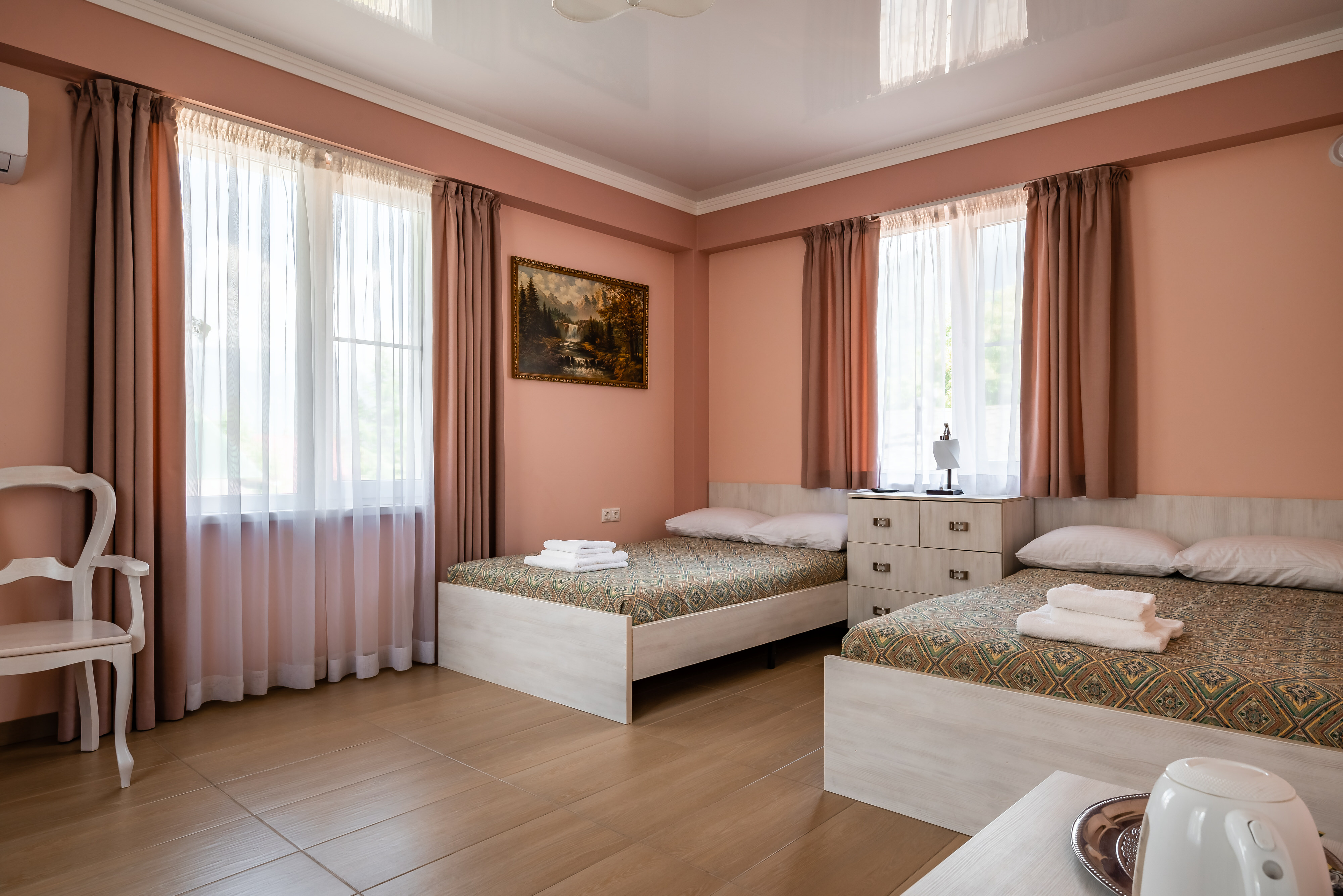 Комфортный уютный отель на 14 номера. Для гостей отеля бесплатно доступен тёплый подогреваемый до 30℃ бассейн. Финская сауна, настольный тенис, мангал.