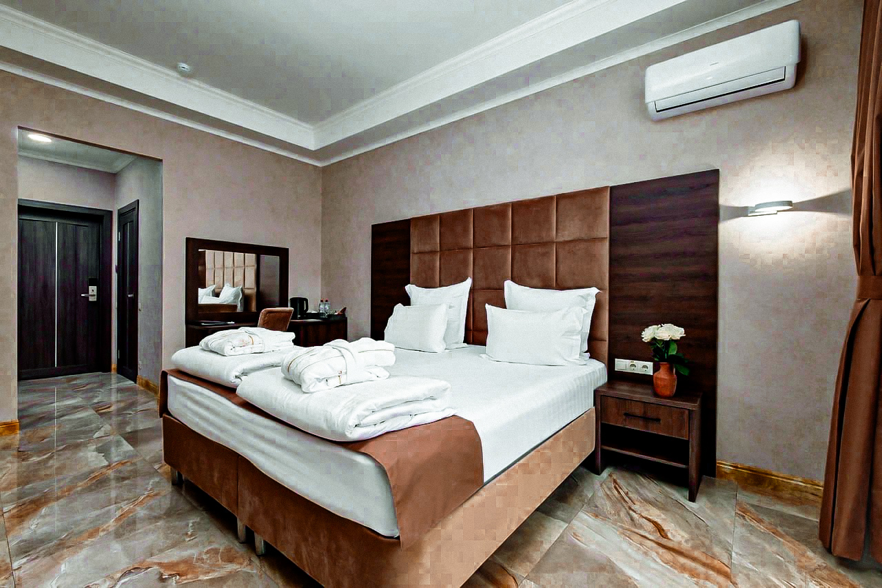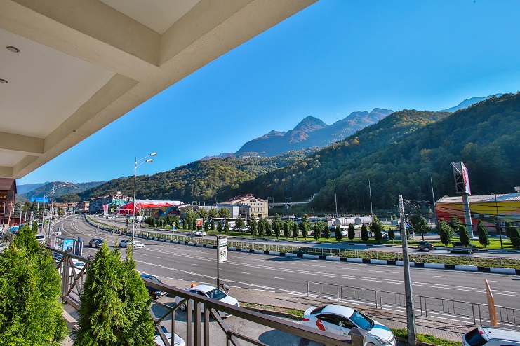 Самолетом до аэропорта Адлер (г. Сочи), далее на автобусе №105, 105с, 535 в направлении: «Роза Хутор» до остановки Мегафон», далее пешком 154 м до отеля.