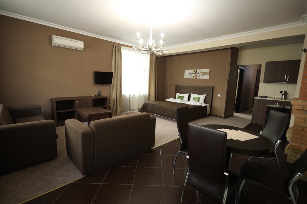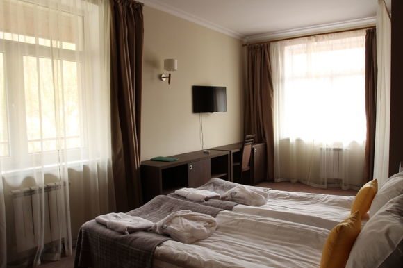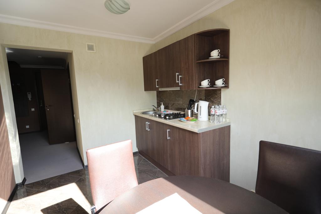 Понравилось · Просторный номер, комфортный) Отличный ремонт, чистота, очень удобная большая кровать, комфортный матрас. Махровые мягкие халаты. Огромный балкон, прекрасный вид на горы, даже с первого этажа! Кухня отдельно от спальни, два телевизора.