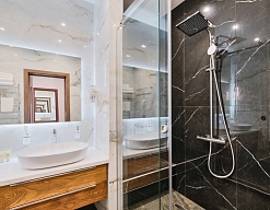 · Чистые и просторные номера. Отличный персонал. Завтрак шикарен!!! Омлет изумительный! Морс из облепихи просто нет слов. Жаль не успели попасть в сауну и бассейн, но уверен, что и там все круто! Душевая просторная.