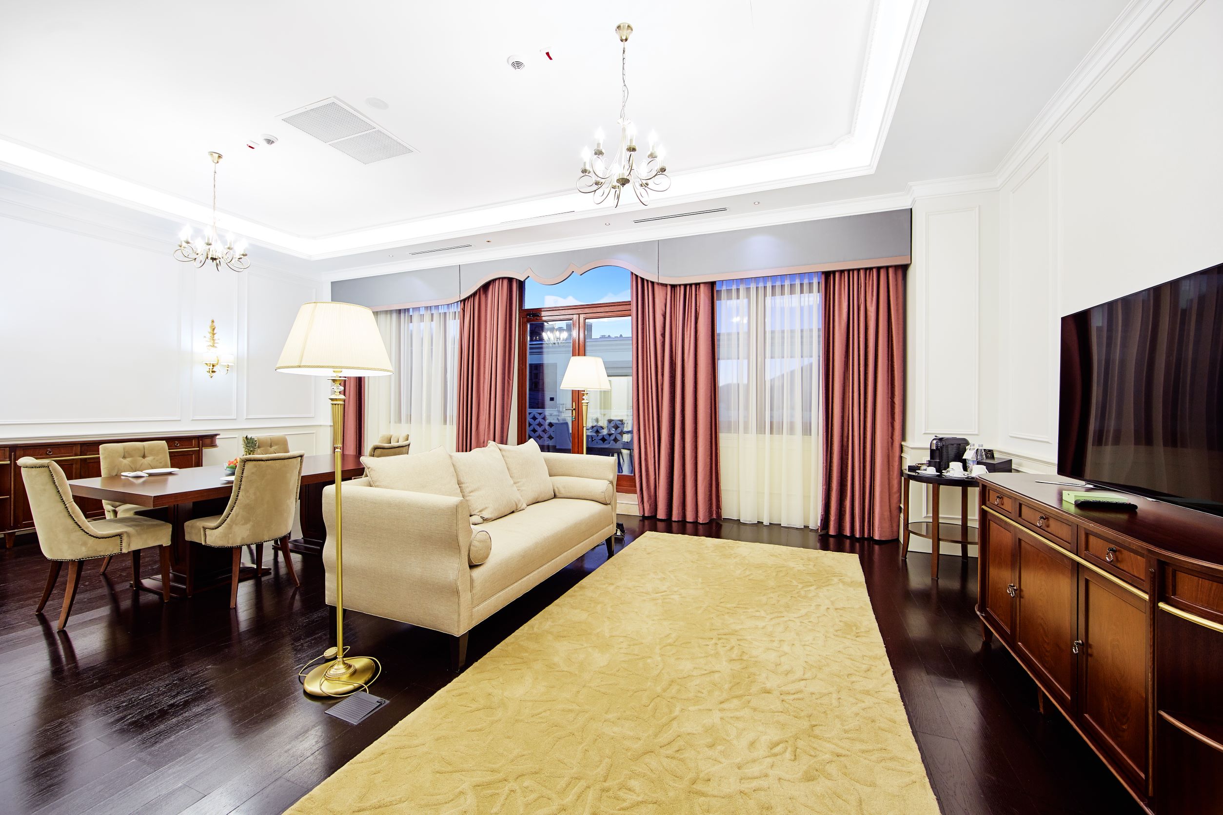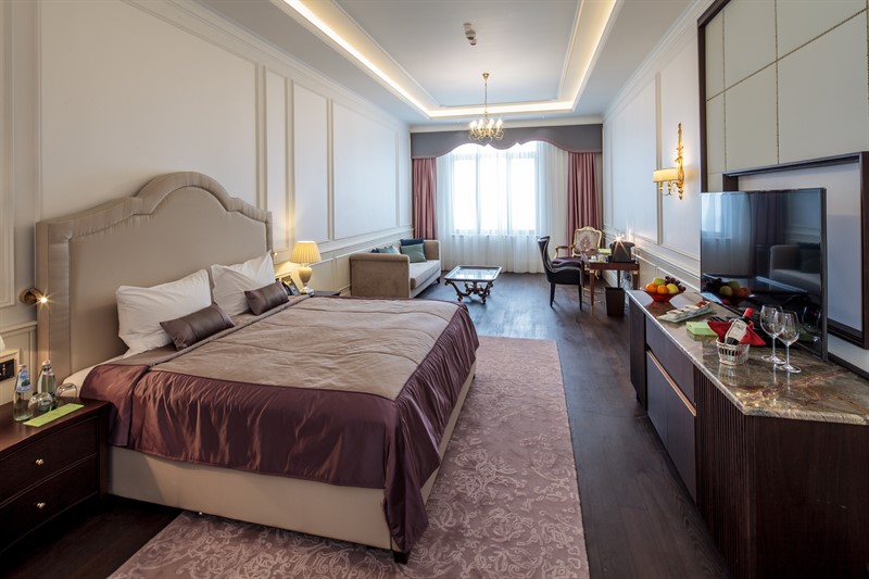 Номер выдержан в едином стиле, все продумано. Если капсульная кофемашина, вкусный чай, вода. Отличая косметика в ванной.