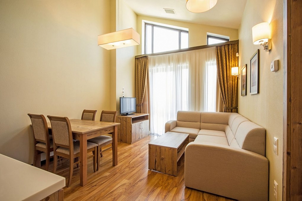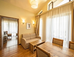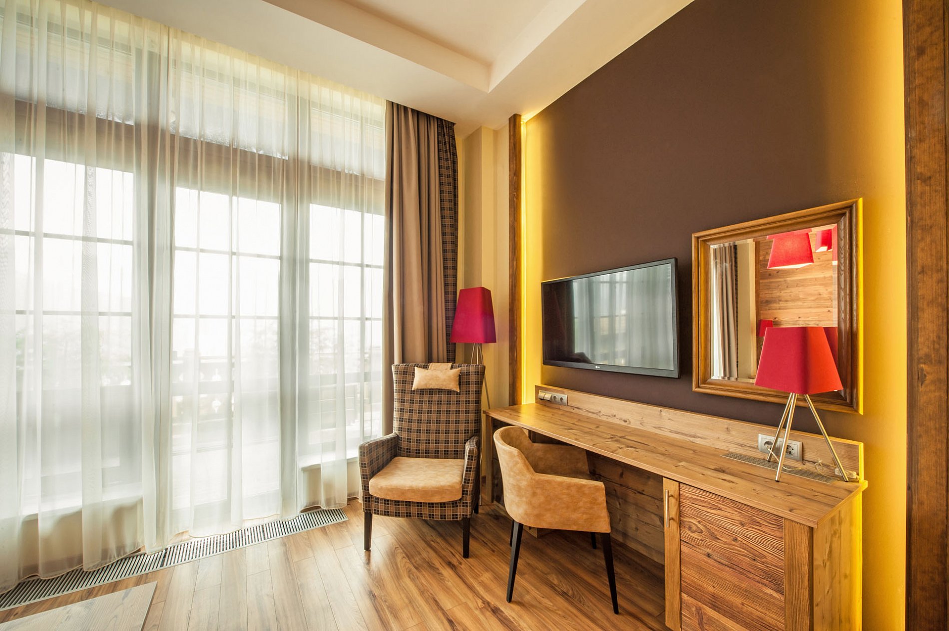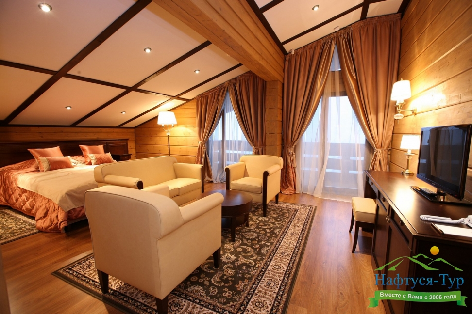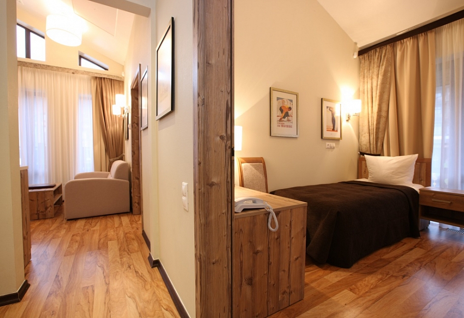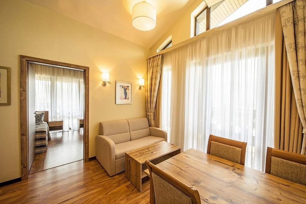 Отель очень красивый и расположен в горах. Место идеальное и сказочное. В горнолыжный сезон здесь есть чем заняться и чем себя развлечь. Тут безумно свежий воздух, которым невозможно надышаться. Сам отель представляет собой основной корпус и виллы, в оформлении много дерева, напоминает альпийский стиль.