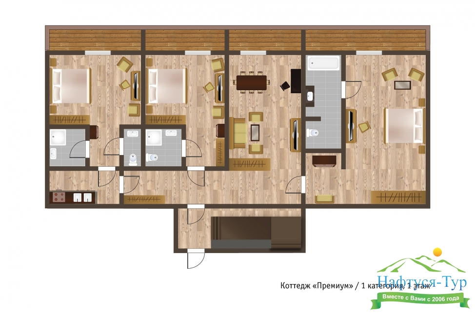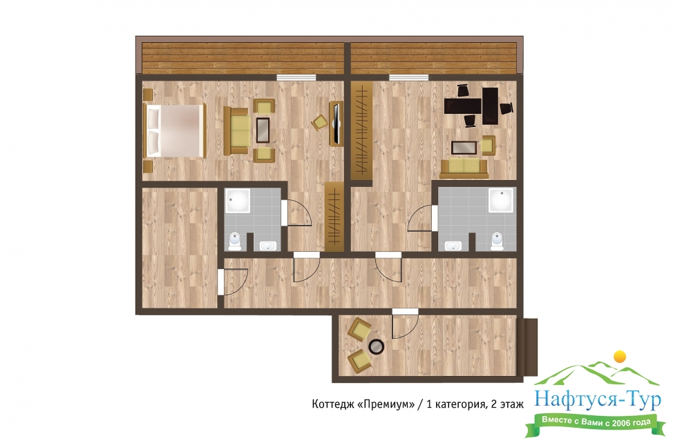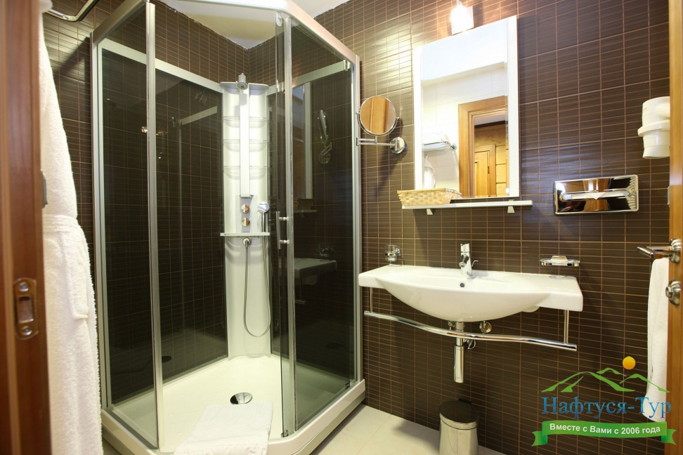 2 санузла, с душевой кабиной, тапочки, туалетные принадлежности, халат