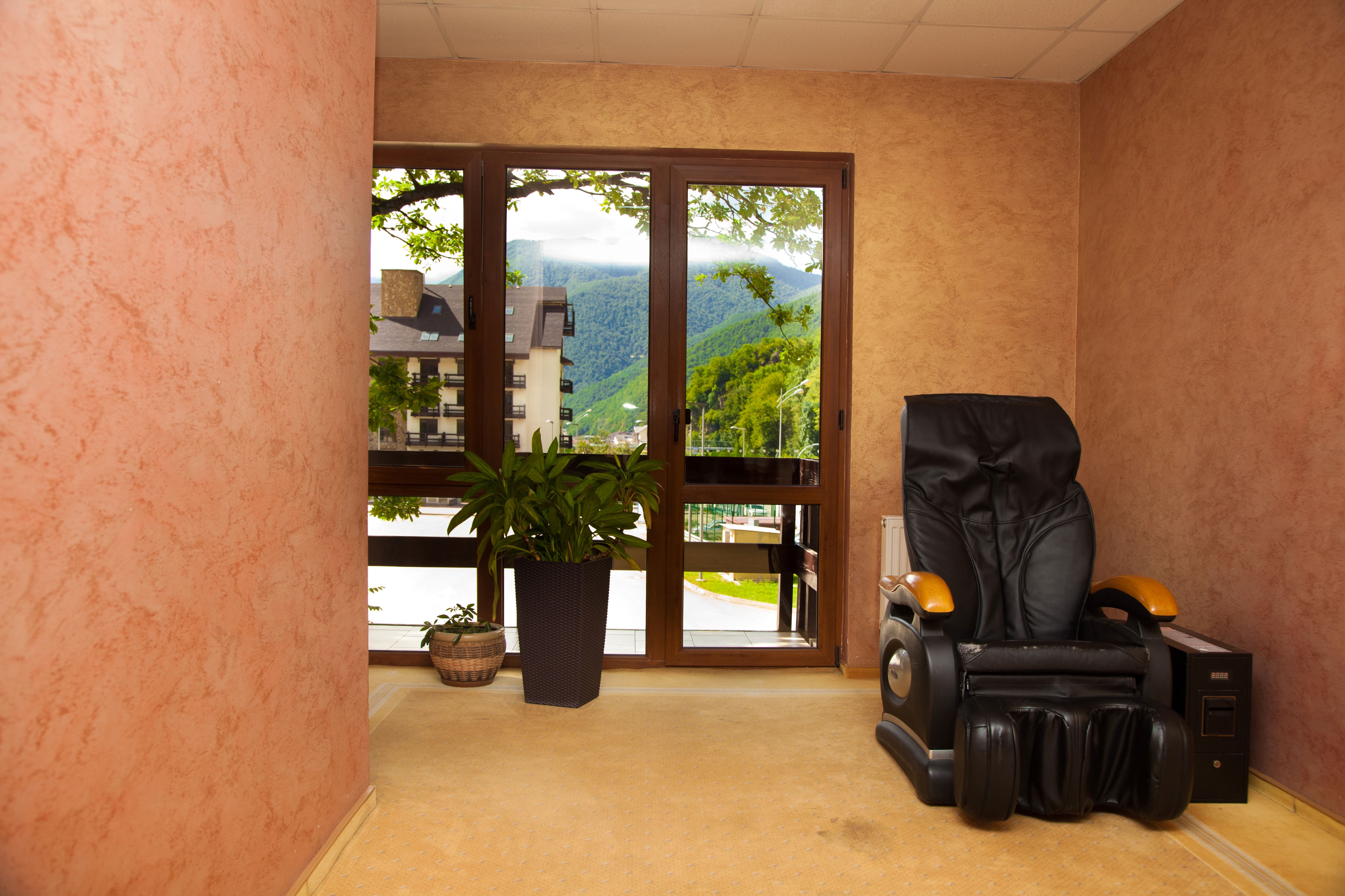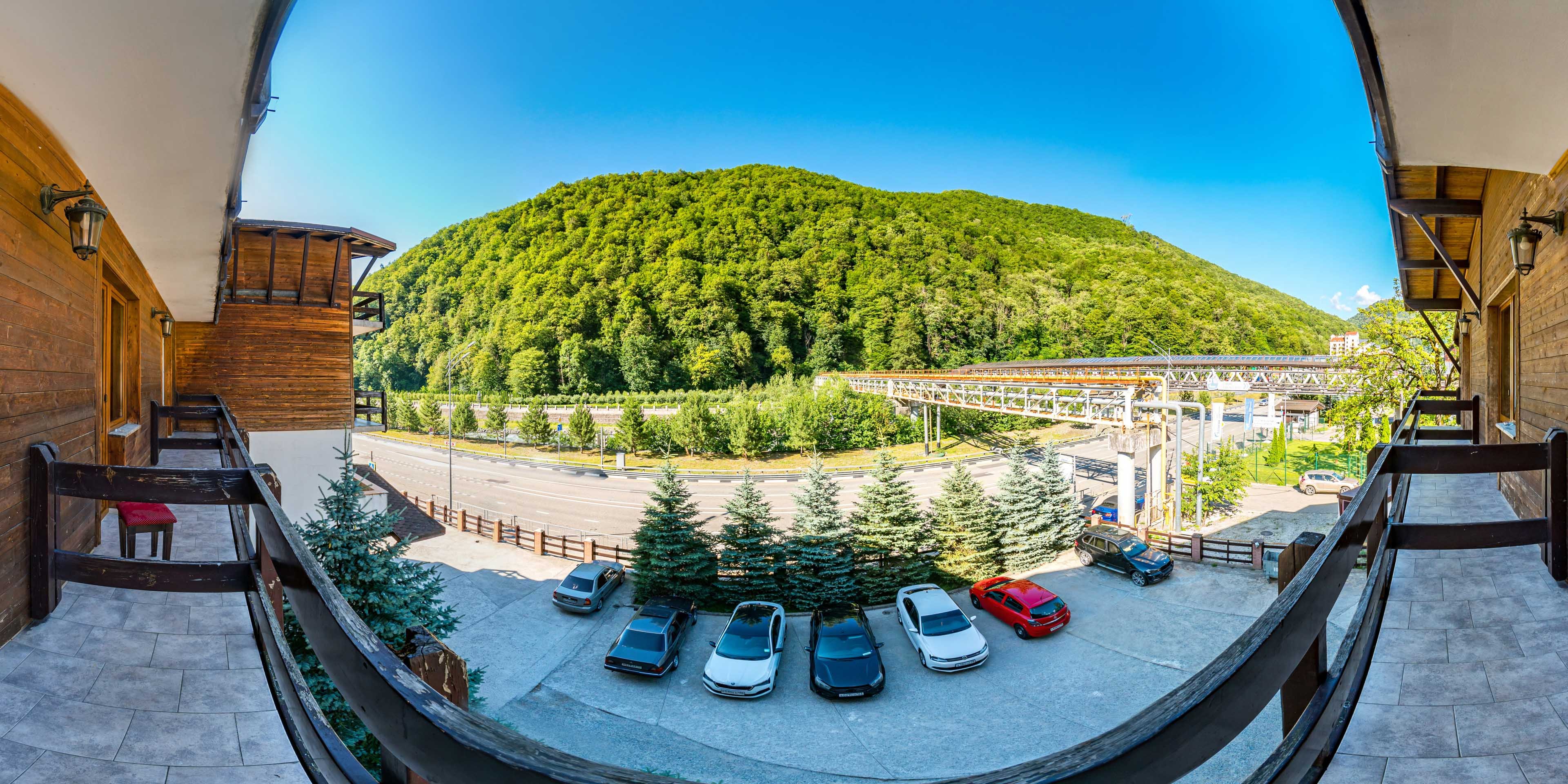 Самолетом до аэропорта Адлер, далее на автобусе №105, 105с до остановки «Вокзал Роза Хутор». Затем пройти 320 м до отеля.