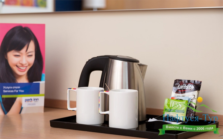 гладильная доска, кофемашина, мини-холодильник, сейф, телевизор, телефон, утюг, чайная станция, чайный набор посуды