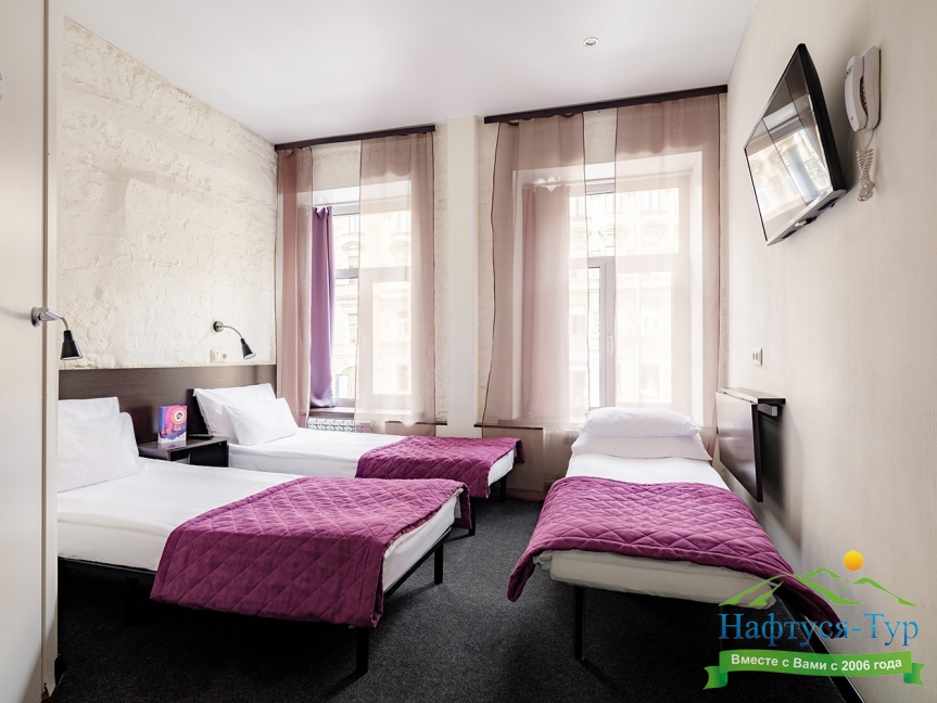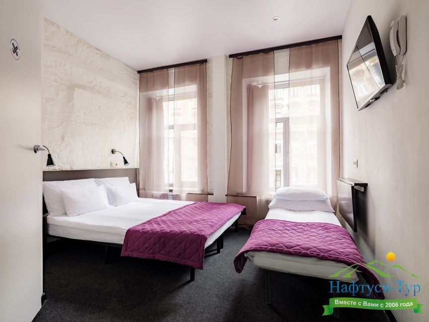Самолетом до аэропорта Пулково (г. Санкт-Петербург), далее на рейсовом автобусе №39 до остановки «ул. Авиационная», далее на метро до станции «Технологический институт-2», далее на метро до станции «Владимирская», далее пройти пешком 460 м до отеля.