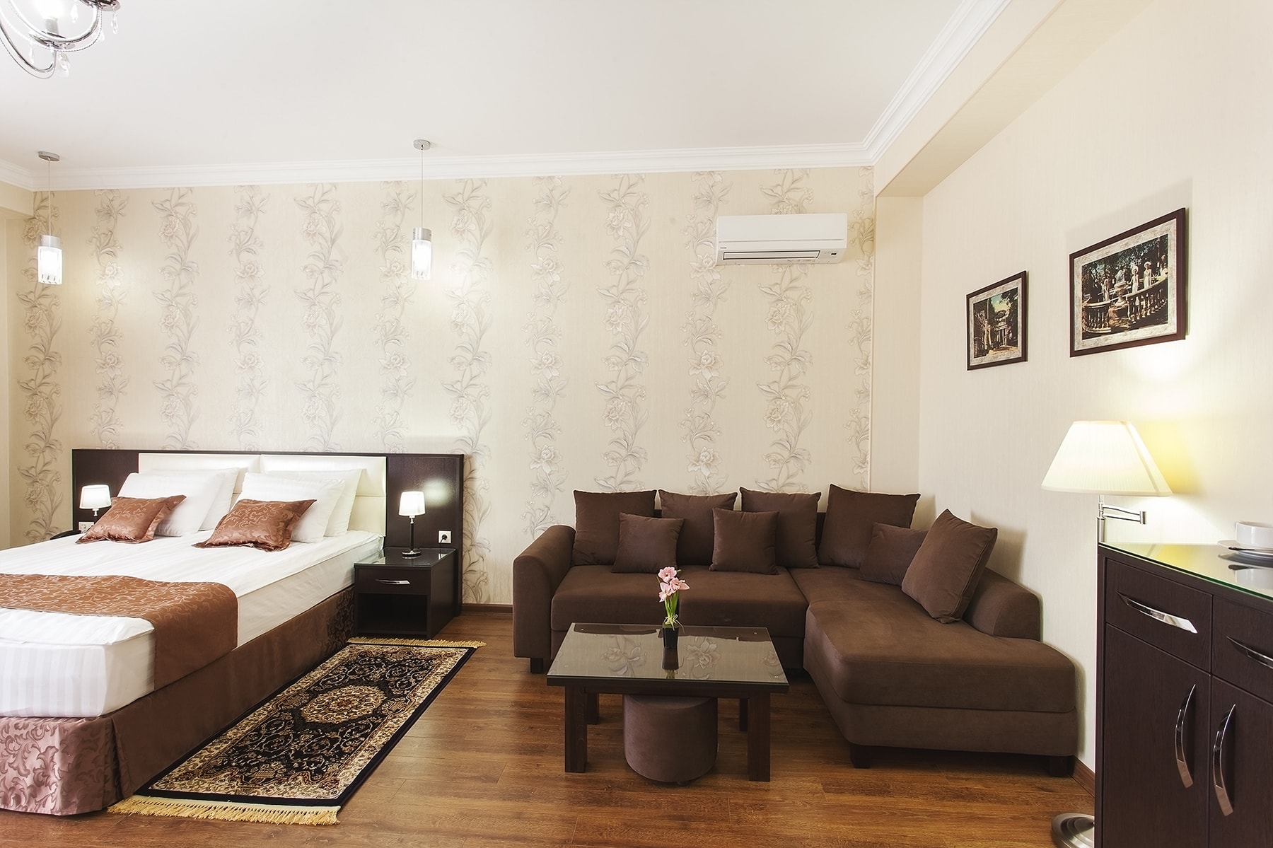 Самолетом до аэропорта г. Минеральные Воды, далее на маршрутном такси №11 до остановки «Вокзал», далее на электричке «Минеральные Воды - Кисловодск» до станции «Ессентуки», далее пройти пешком 1,2 км до отеля.