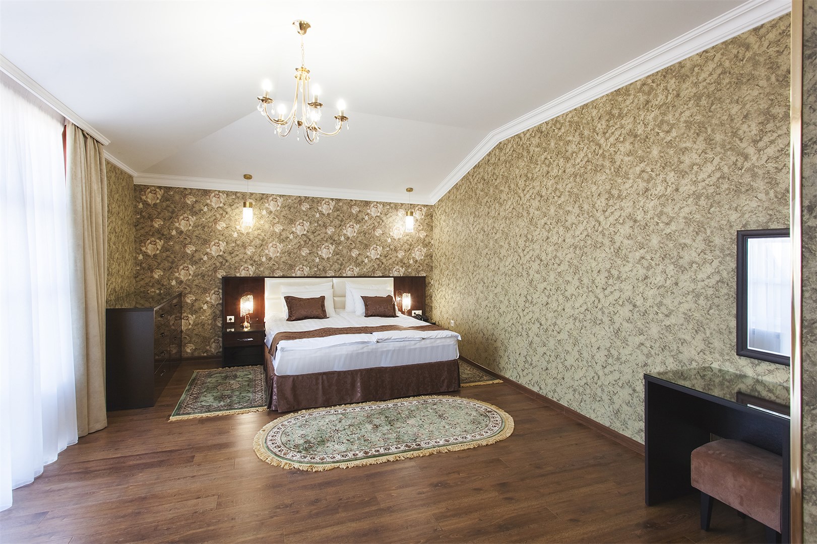Поездом до ж/д вокзала г. Ессентуки, далее на маршрутном такси №12 до остановки «ул. Гоголя», далее пройти пешком 660 м до отеля.