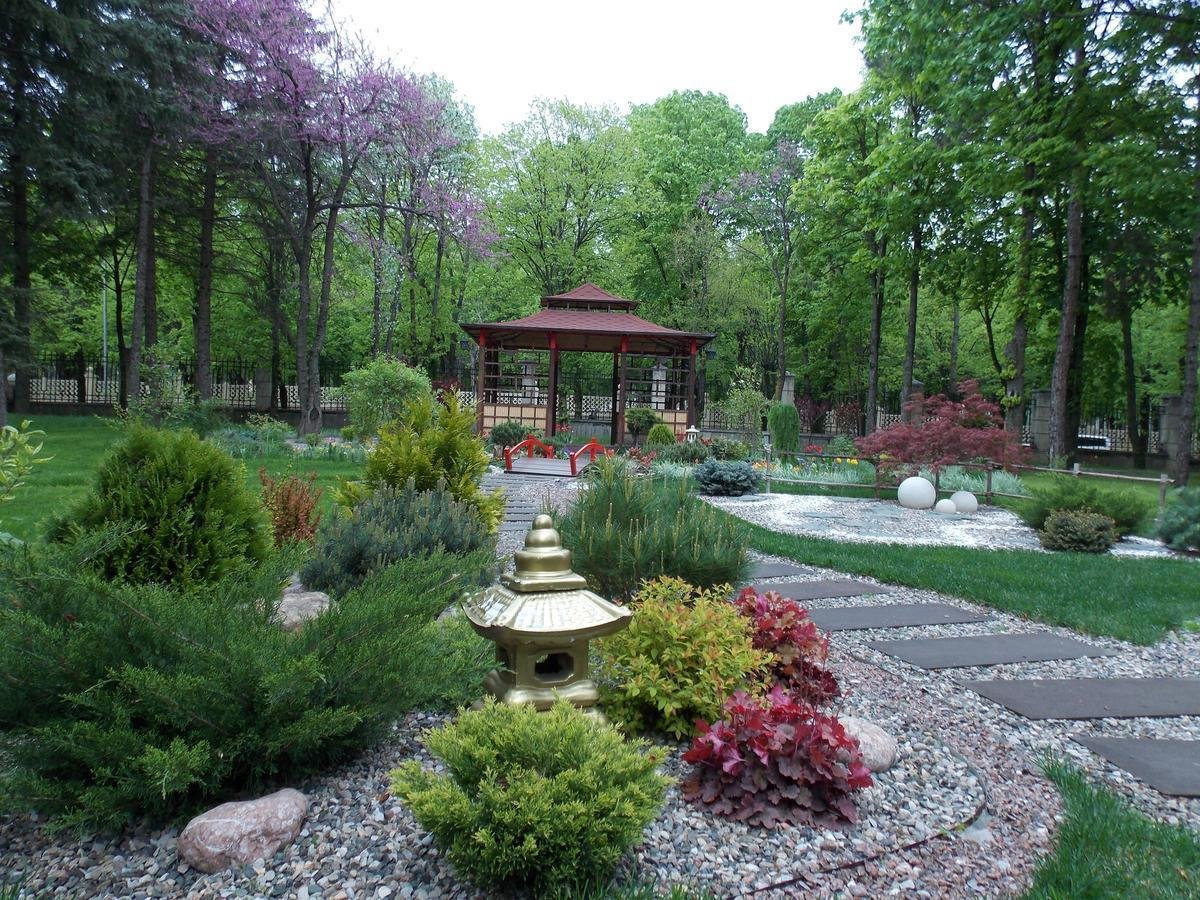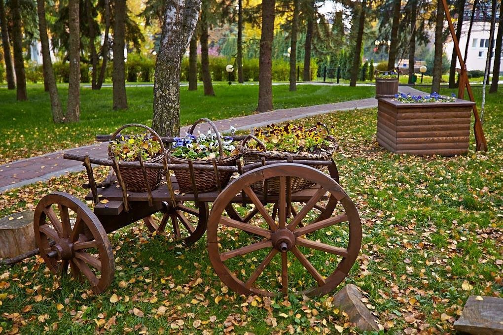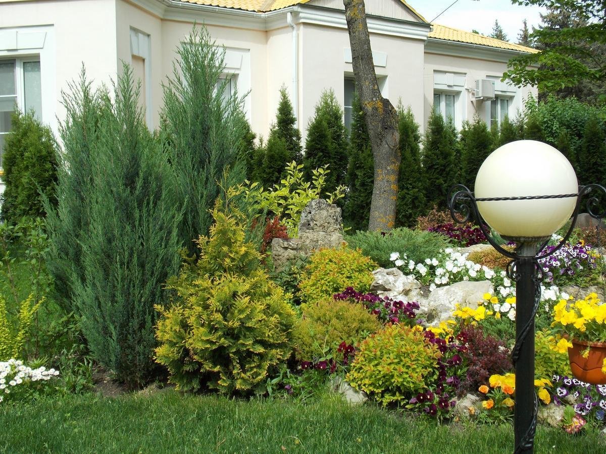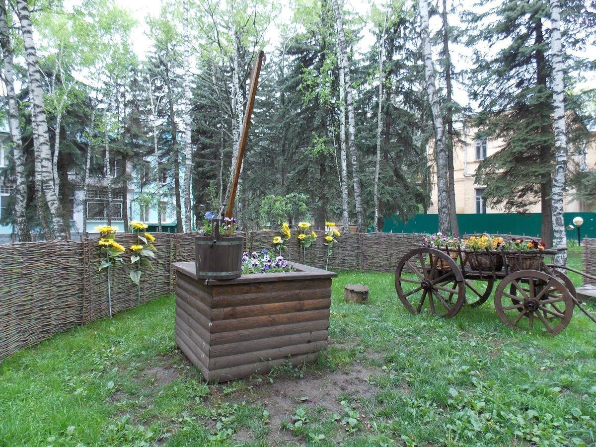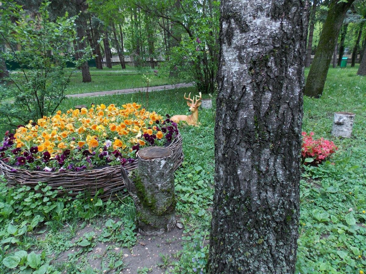 Обширная территория здравницы, хорошо благоустроена, здесь большое количество зелени, деревьев разных пород, цветников.
