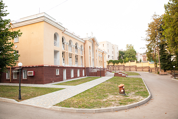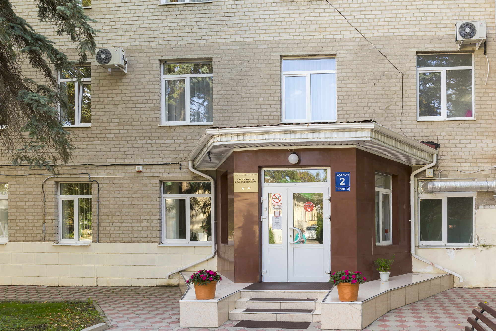 Спальный корпус - старинное здание дворцового стиля, построен в 1875 г., соединен теплыми переходами с клубом-столовой, лечебным корпусом.