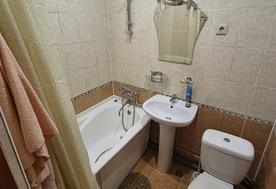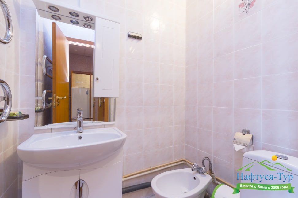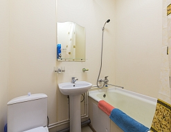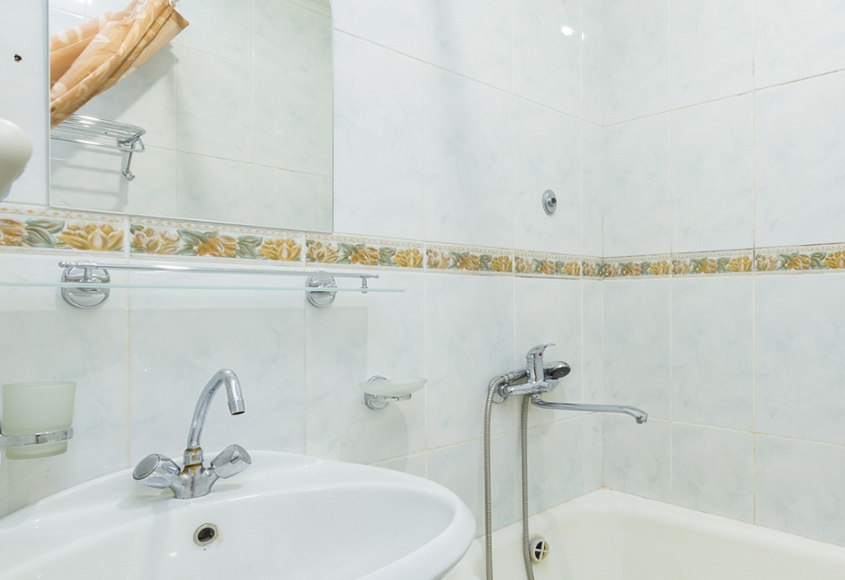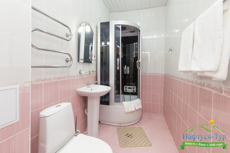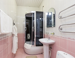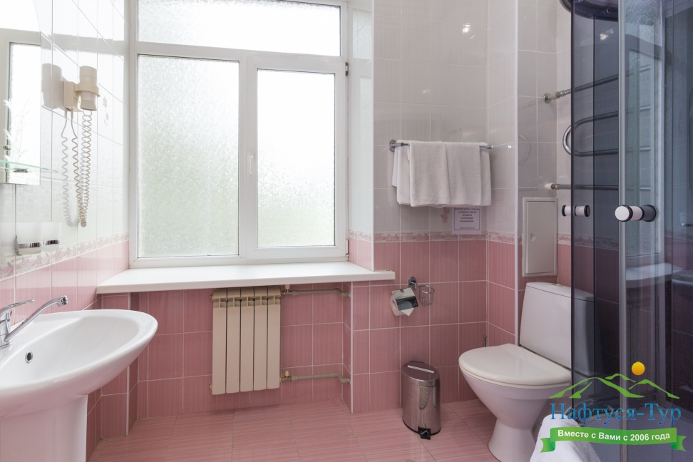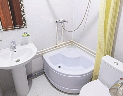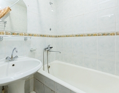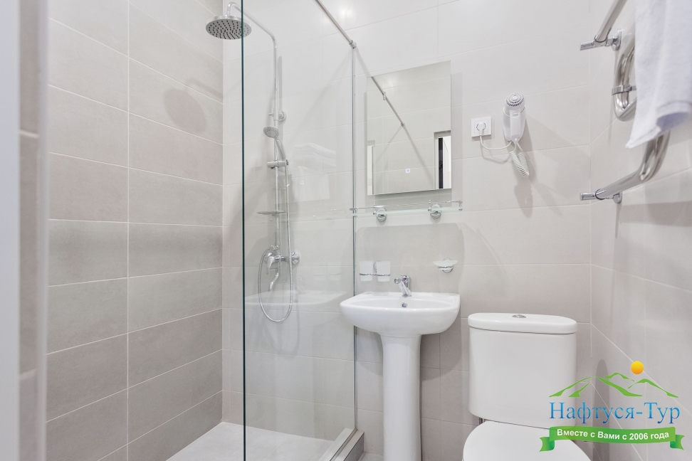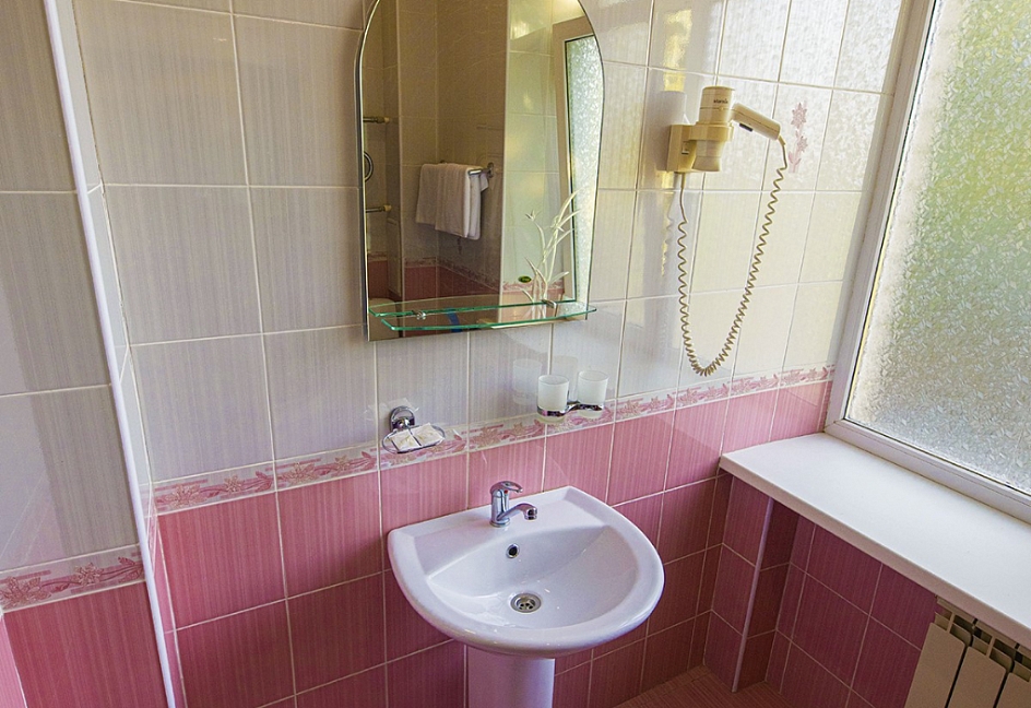 с ванной, тапочки, туалетные принадлежности, фен, халат