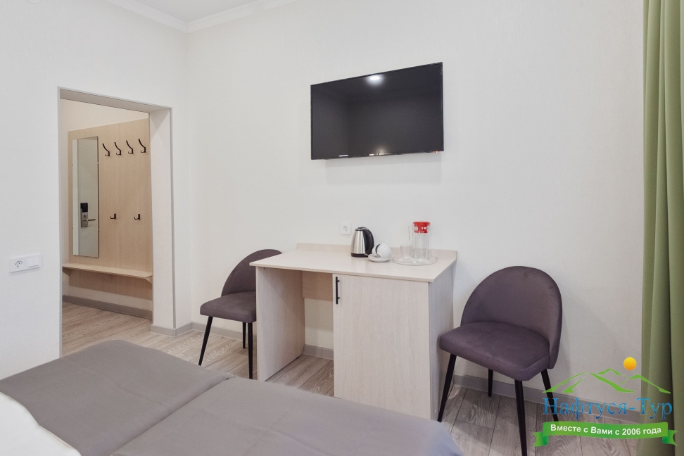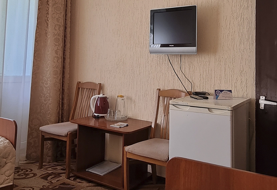 мини-холодильник, телевизор ЖК, чайный набор посуды, электрочайник