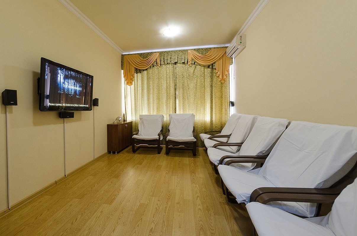 Отличный санаторий. Расположен в очень хорошем месте. В принципе всем осталась довольна. И медперсоналом, и лечащим врачом. И бассейн очень хороший. И номера тоже - практически со всеми удобствами. И интерьеры очень уютные, такие чистые ухоженные. И кормят очень вкусно. С удовольствием бы еще сюда приехала. Единственное, что мне там не понравилось - так это заброшенная территория, которая располагается позади санатория: заброшенный парк. За которым давно уже никто не следит, не ухаживает. Который находится в плачевном состоянии. Такое там все заросшее, дикое и неуютное. Заасфальтированные дорожки, которые были когда то давно там проложены в разбитом состоянии. Что невозможно там было пройтись и погулять. Что сразу начинает портить все впечатления. И такое создается - что о нем совсем забыли. Так хотелось бы, чтобы администрация санатория задумалась о том, чтобы наконец тот заброшенный парк привести в порядок. И выделили наконец на все это все свои деньги и средства. Как то облагородили его, проредили . Посадили новые цветы, кустарники, установили фонтаны, беседки. А старые (если они еще там до сих располагаются) отремонтировали. Починили скамейки. Либо на новые заменили. В том числе отреставрировали статую одной женщины, которая как раз находится позади данного парка. У одной круглой цветочной клумбы. А также установили спортивные, детские, игровые, площадки (для тех кто приезжает сюда с детьми) И чтобы там тоже было где можно было пройтись и погулять. Не только у входа в санаторий. Где многие гуляют, сидя на скамейках. А то на территории одного из соседних санаториев, кажется Металлург называется - такое все ухожено. И спортивные площадки там есть. А здесь нет. Стыдно становится, что свою территорию не могут привести в порядок, в нормальное состояние. За передней частью парка (у входа в санаторий) еще как то следят, ухаживают, приводят что то в порядок, если чего то недостает, чего либо сажают, где люди гуляют, сидят на скамейках, а вот задняя - просто ужас, что творится. Хотелось бы, чтобы задняя часть парка (что составляет основную часть всей территории) тоже была бы наконец приведена в порядок. Что желает лучшего.