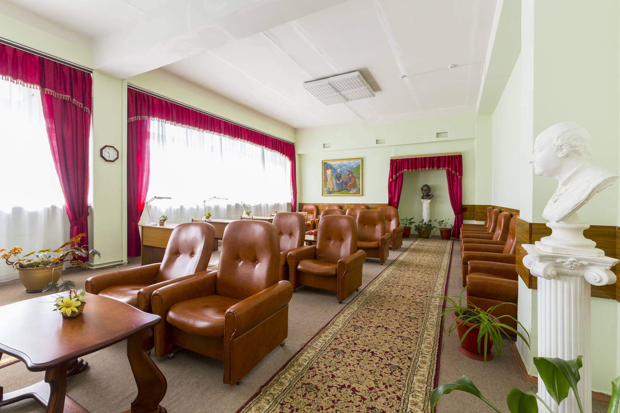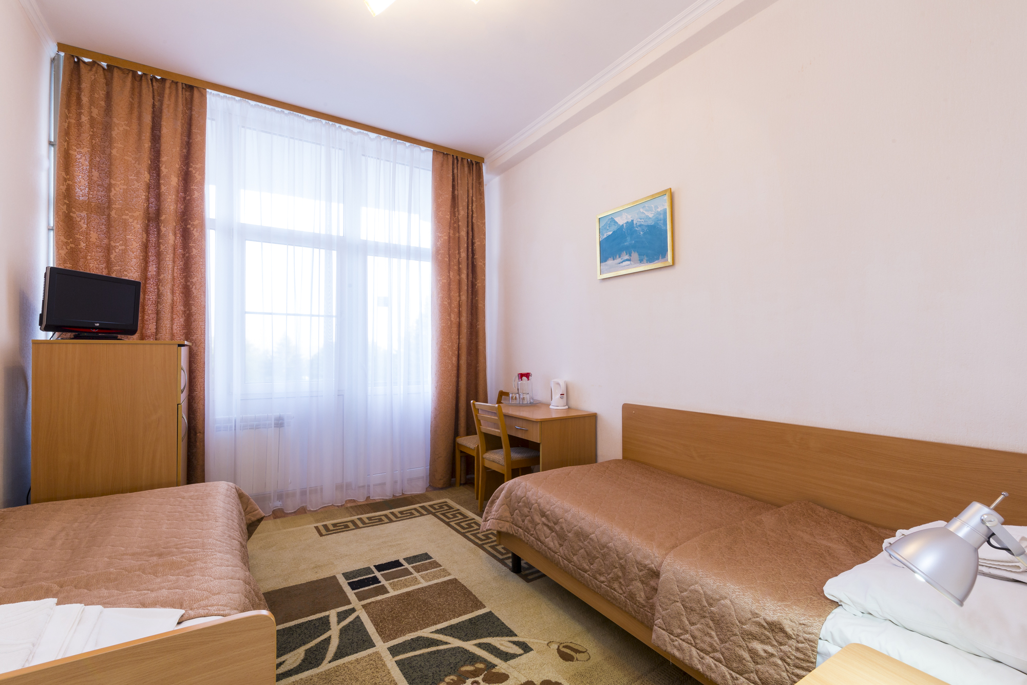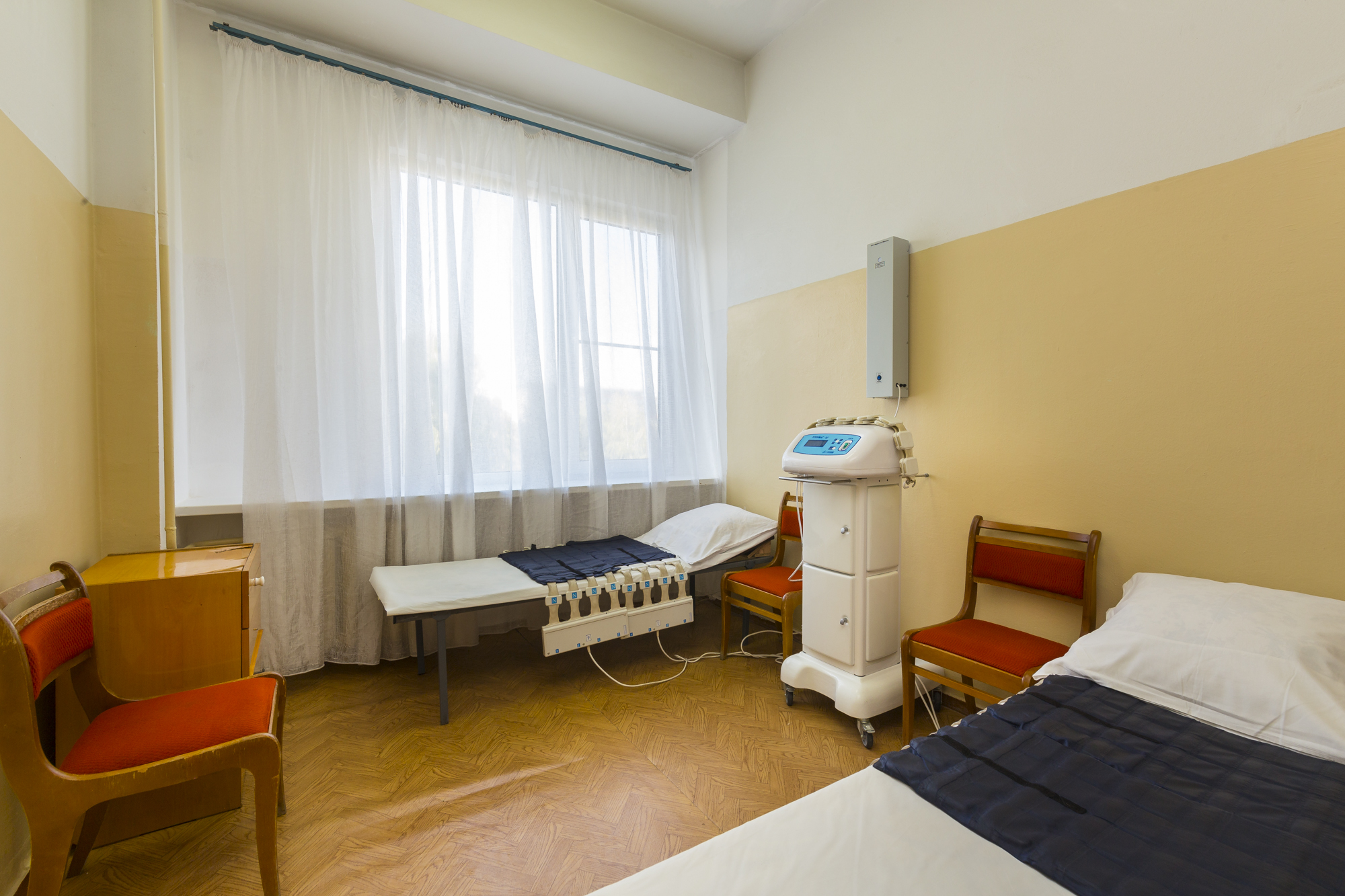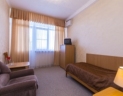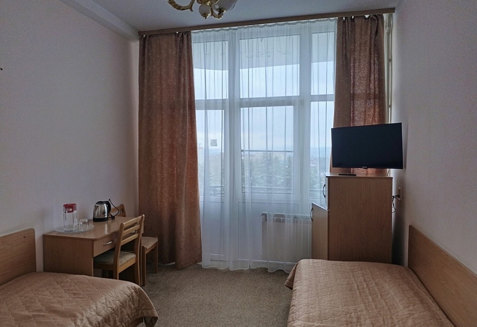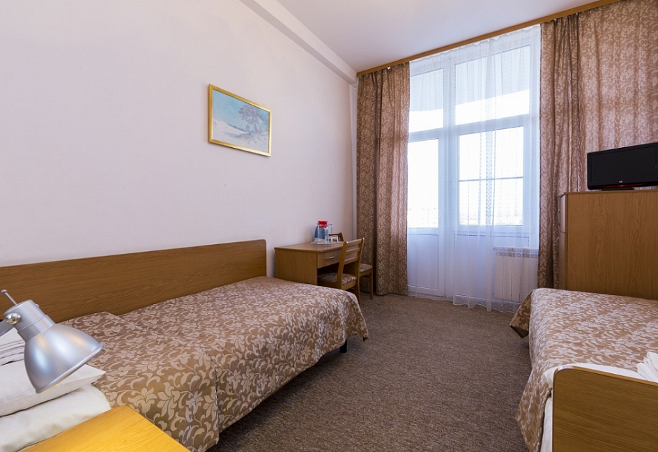 Вчера приехала из санатория.Отдыхала(льготная) с 11 по 28 ноября. Прежде ,чем туда ехать ,начиталась отзывов.Про питание были только отрицательные,думала привыкну,если что-доплачу(предложили доплату 500 руб в день). Заселили быстро.Насчет терапевта не стала торопиться попасть в первый день хоть к кому и мне рекомендовали Поремову Т.Н. Я не пожалела-принимала не торопясь, выслушивая, не отказывая в процедурах(за что ей очень благодарна). Заселили на 6 этаж ,потом, через 5 дней переселили на 8 эт, т.к. начали ремонт на 6эт. Номер чистый,теплый( две батареи),немного поддувало,мы купили малярный скотч и подклеили.Сантехника белая,новая,стены чистые,как после ремонта,нареканий нет.Горничная приходила, пылесосила почти каждый день. Пыль с мебели сами вытирали, раковину и поддон тоже не гнушались мыть,как никак -женщины. Пастельное меняли один раз за 18 дней( оно и так было чистым) . Выдали три полотенца.В номере- ТВ маленький,холодильник LG,графин и два стакана. Брала из дома фен и чайник дорожный.Территория -супер! Процедуры -каких только нет!!!! Смотрите в прайс-листе этого санатория. Врачи толковые! В наших поликлиниках такого не получите!!Прием платный,но в два-три раза дешевле,чем в Москве (если захотите попасть с нескольким)Теперь о грустном:ПИТАНИЕ,это что-то...Все на воде и без молока ,масла, каша с комками огромными,порции рыбы и мяса уменьшены в три раза,подача холодная! Чай,как будто пьете кипяченую воду.Сливают каши (официантка сказала,что не тронутые каши) которые остались на столах -в общий бак , откуда набирали.Сама лично видела и сделала замечание.В ответ-ухмылка! Все овощи водянистые(вареная морковь,свекла кусками). Суп-баланда( свекла и вода). Официанты злющие,делают вид,что не слышат. Клеёнка на столе не вытирается вообще,салфетки- по одной на человека.Тарелки все со сколами, снизу с прилипшей грязью(приборы столовые брала свои). Когда таксист вез меня в аэропорт,сказал,что его часто вызывают к пищеблоку подъехать,тк повара выходят с ТАКИМИ сумками,что донести не могут! Я и не удивилась.Рядом есть магазины, закупались частично там.Столовка испортила все впечатление. Вечером фильмы,танцы,приезжают танцевальные группы,есть библиотека.От санатория экскурсии чуть дешевле.В санатории все с ОРЗ,ходят кашляют,чихают.