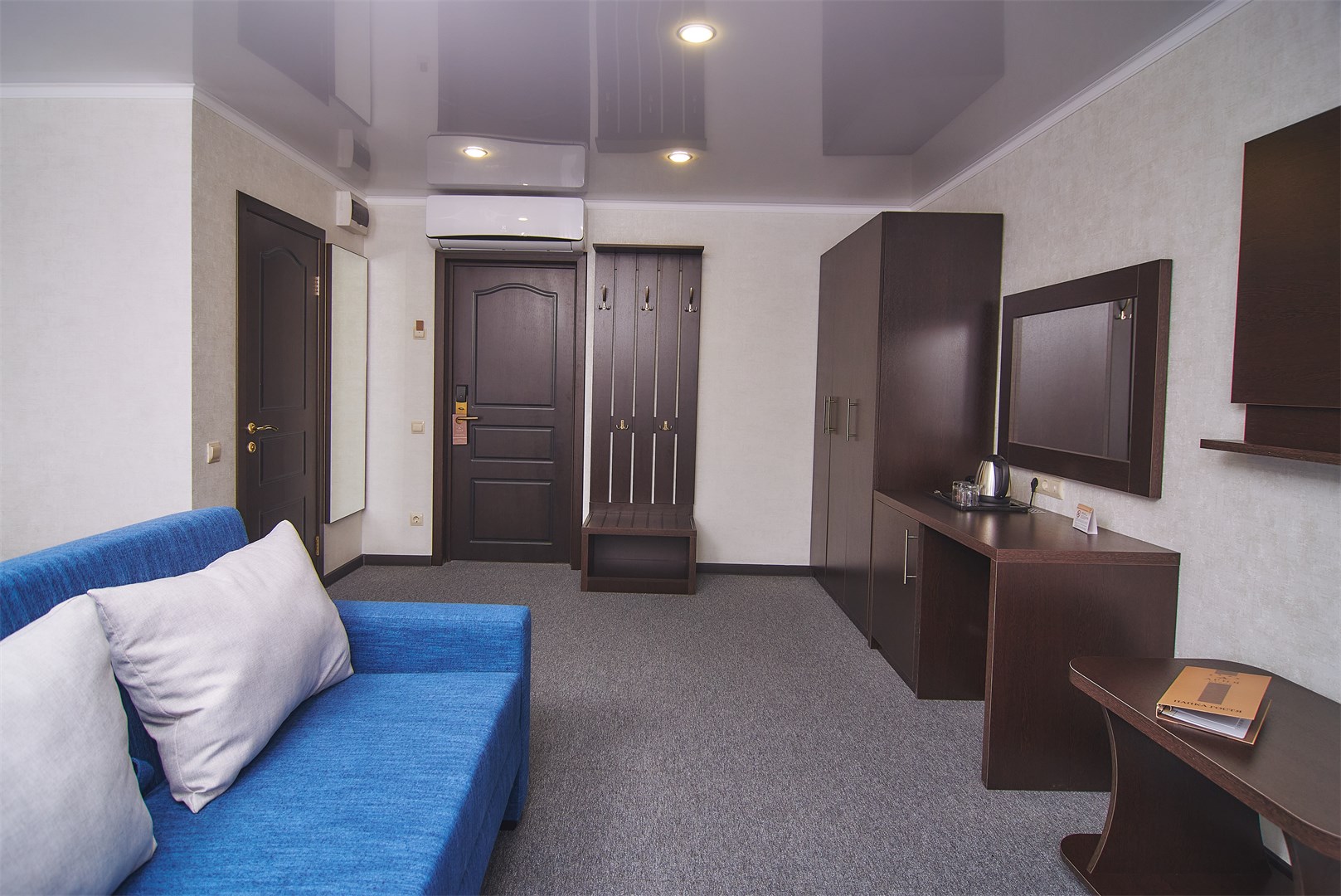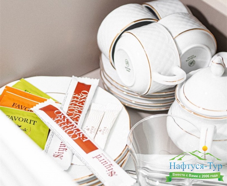 кондиционер, мини-холодильник, сейф, телевизор, телефон, чайный набор посуды, электрочайник