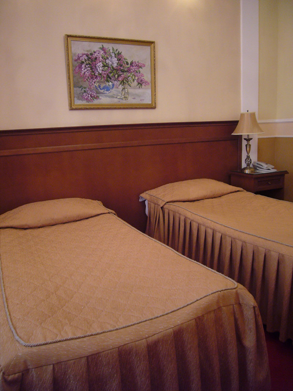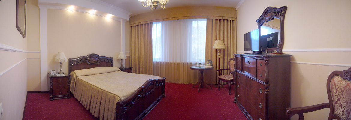 Поездом до ж/д вокзала г. Кисловодск, далее на маршрутном такси №8 до остановки «Колоннада», далее пройти пешком 180 м до отеля.