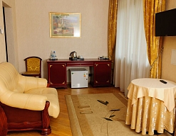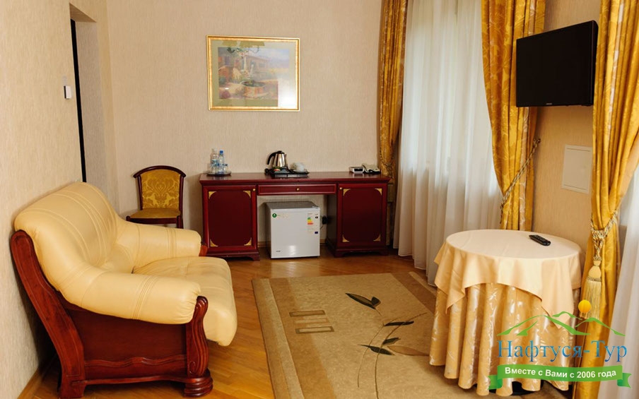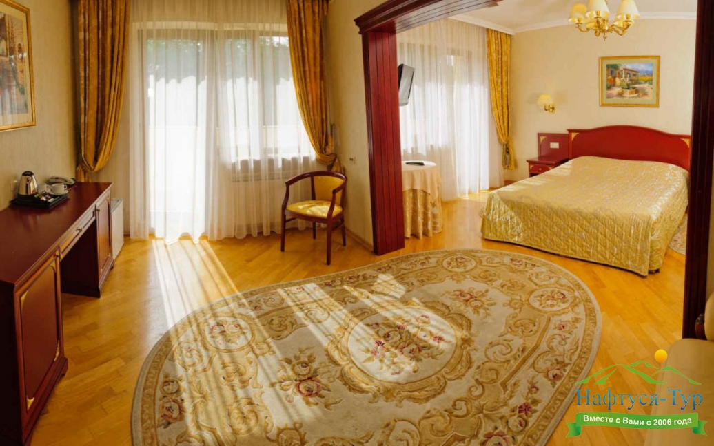 Комфортабельные номера различных категорий. Независимо от вашего выбора – стандарт, полулюкс или люкс, в каждом номере санатория созданы все условия для вашего уюта и спокойного отдыха. Номера оформлены в стиле современного комфорта.