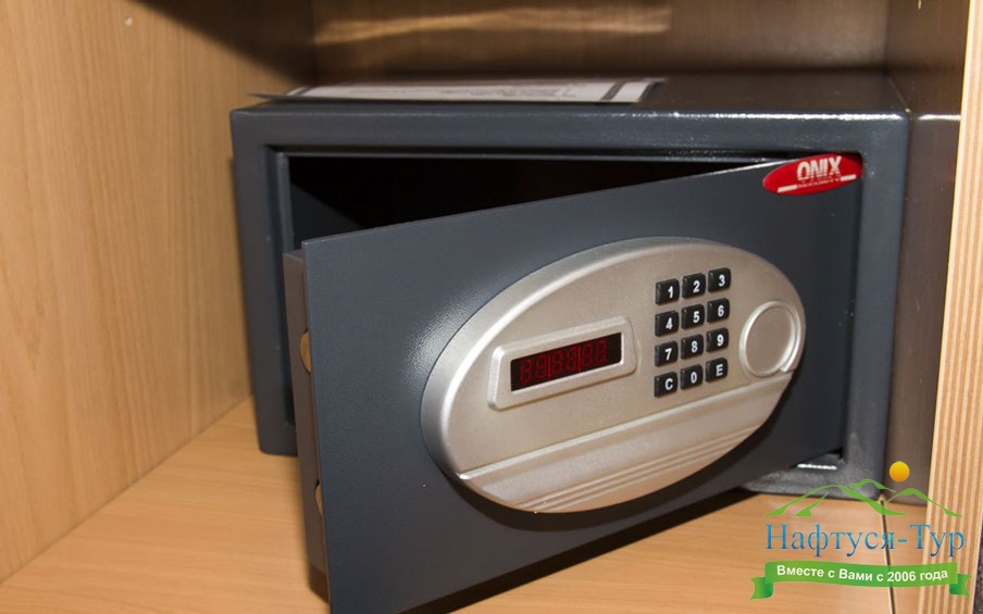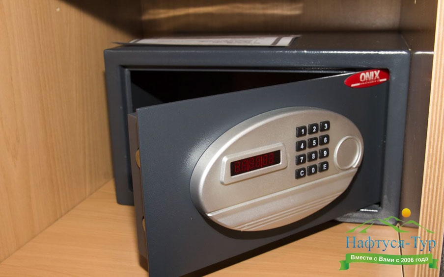 кондиционер, сейф, телевизор, телефон, холодильник, чайный набор посуды, электрочайник