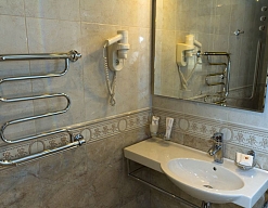 с душевой кабиной, туалетные принадлежности, фен