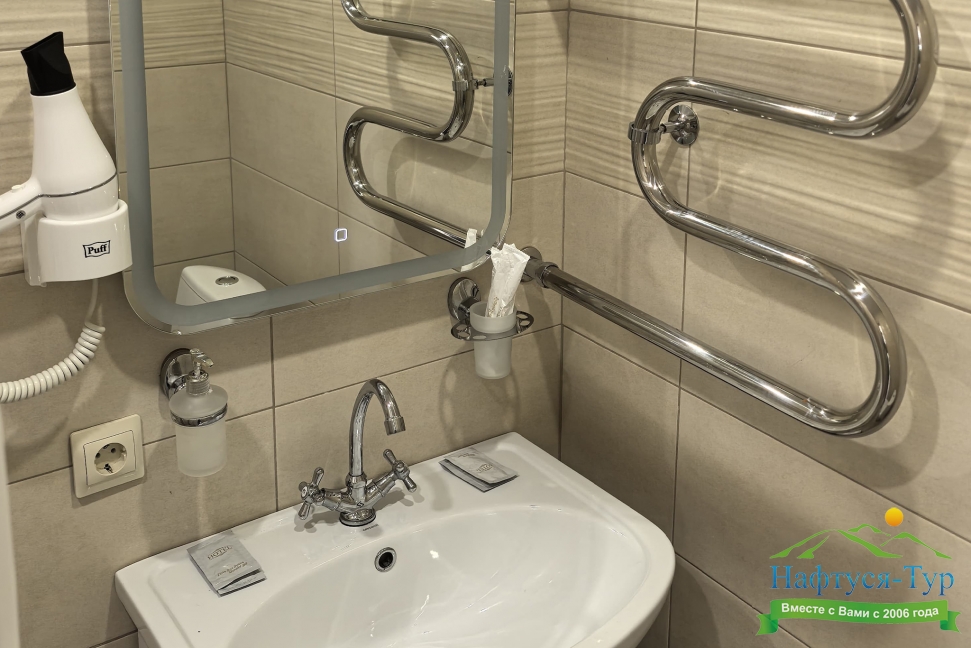с душем, туалетные принадлежности, фен