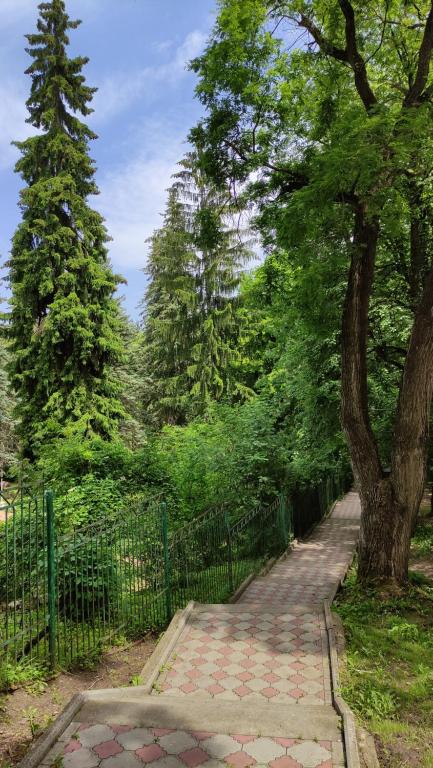 Поездом до ж/д вокзала г. Кисловодск, далее на маршрутном такси №17 до остановки «ул. Лермонтова», далее пройти пешком 296 м до клиники.