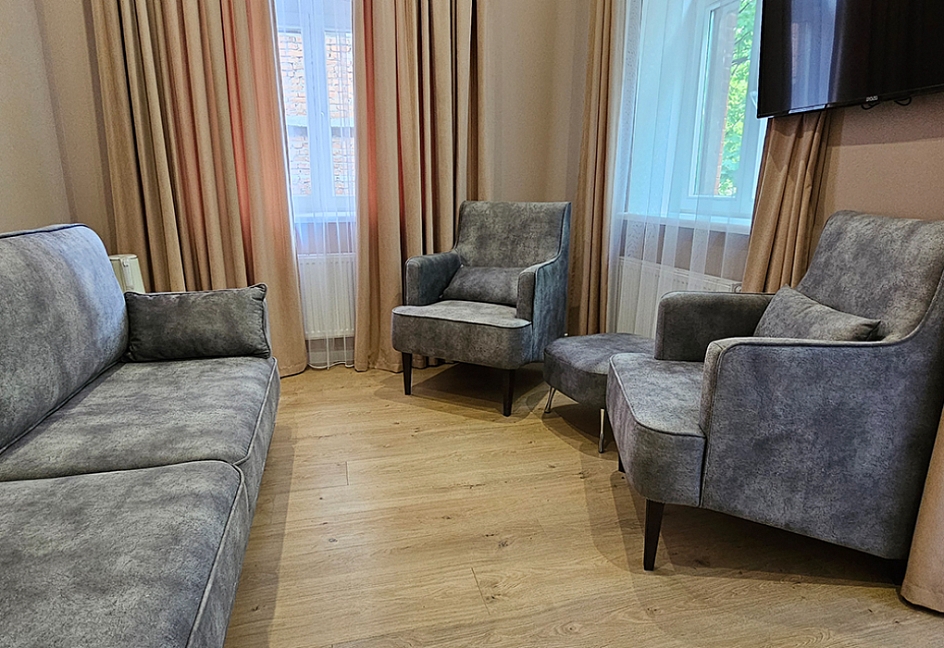 Самолетом до аэропорта г. Минеральные Воды, далее на маршрутном такси №11 до остановки «Вокзал», далее на электричке до станции «Кисловодск», далее пройти пешком 1,42 км до клиники.