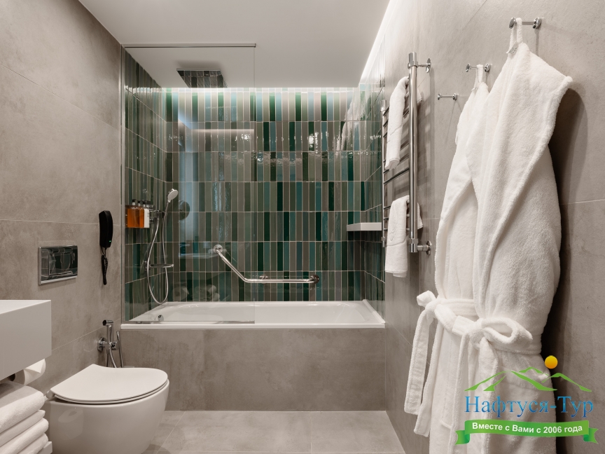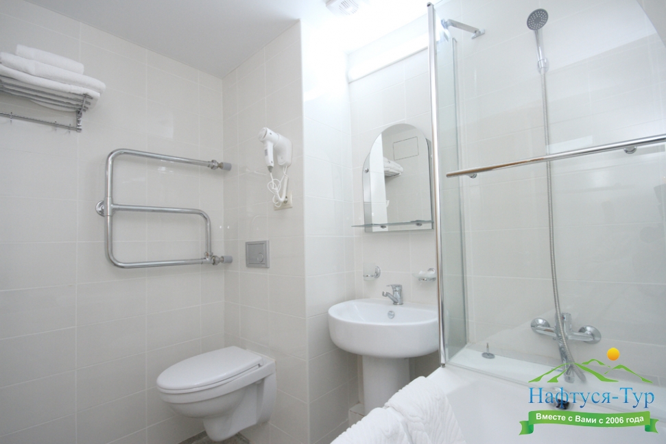 с ванной, туалетные принадлежности, фен