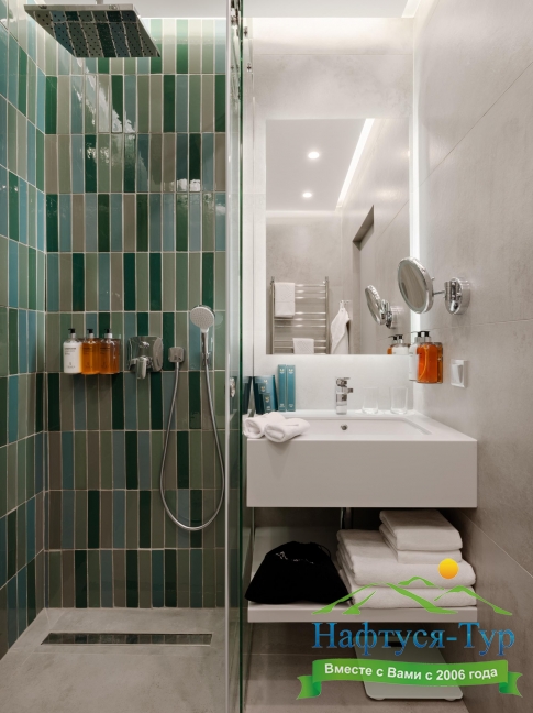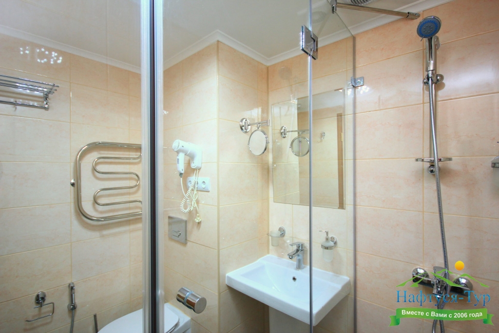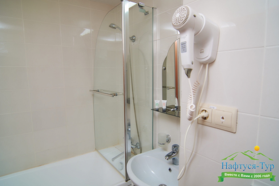с душем, туалетные принадлежности, фен