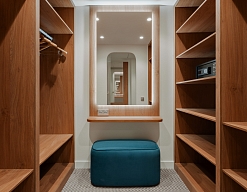 вешалка, зеркало, кровать двуспальная, прикроватные тумбочки, стол, стулья, шкаф
