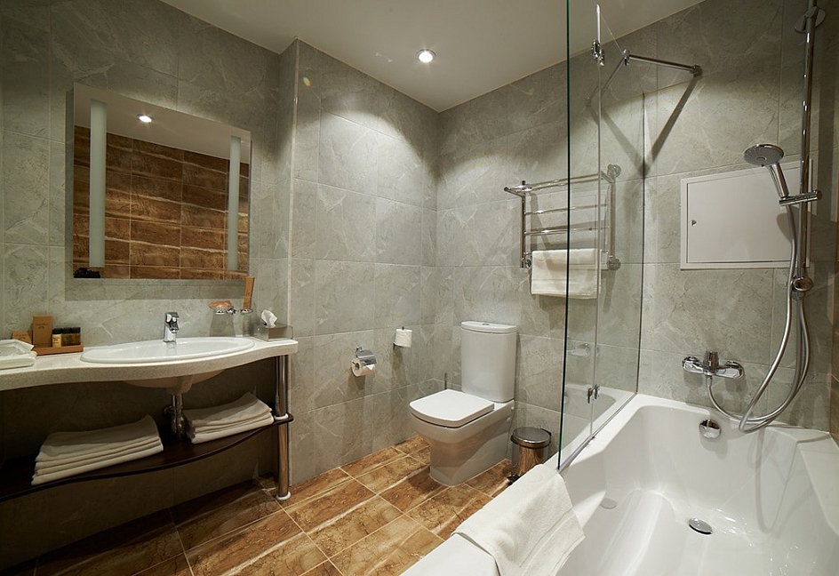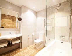 2 санузла, с ванной, с душевой кабиной, тапочки, туалетные принадлежности, фен, халат