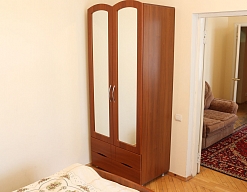 вешалка, зеркало, кровати односпальные /одна двуспальная кровать, прикроватные тумбочки, стол, стул, шкаф
