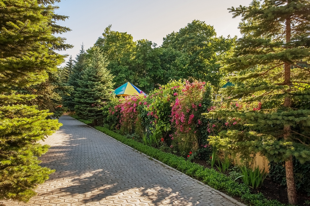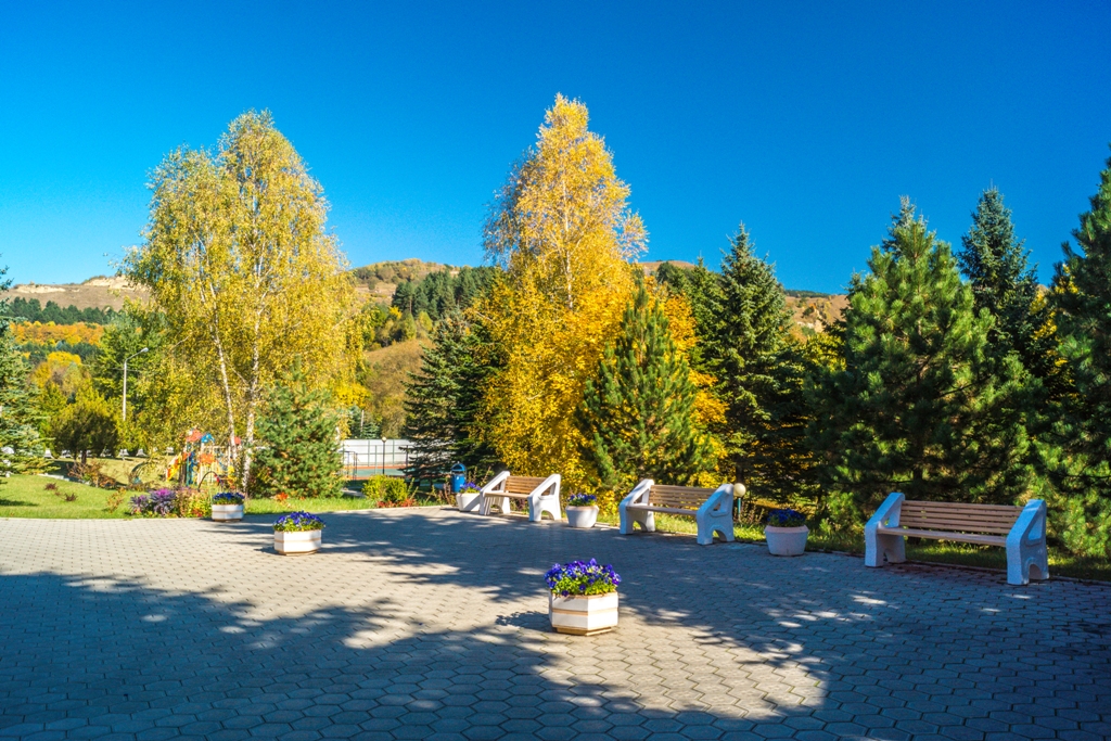 Природа и спокойствие. Санаторий окружен живописными садами и горными пейзажами, создавая уникальные условия для вашего восстановления и отдыха от городской суеты.