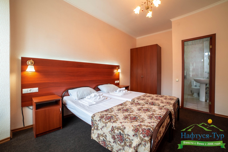 Самолетом до аэропорта г. Минеральные Воды, далее на маршрутном такси №11 до остановки «Площадь Победы», далее на маршрутном такси №223б до остановки «Верхний рынок», далее пройти пешком 890 м до отеля.