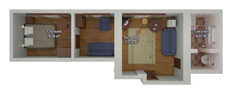 вешалка, зеркало, кресло-кровать, кровати односпальные, прикроватные тумбочки, стол, стулья, шкаф