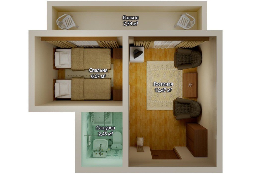 вешалка, зеркало, кресло-кровать, кровати односпальные, прикроватные тумбочки, стол, шкаф