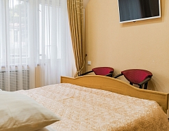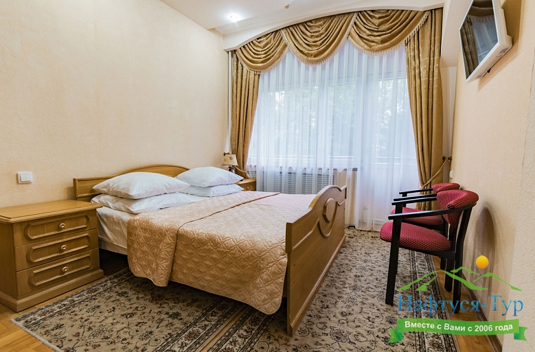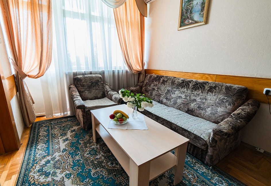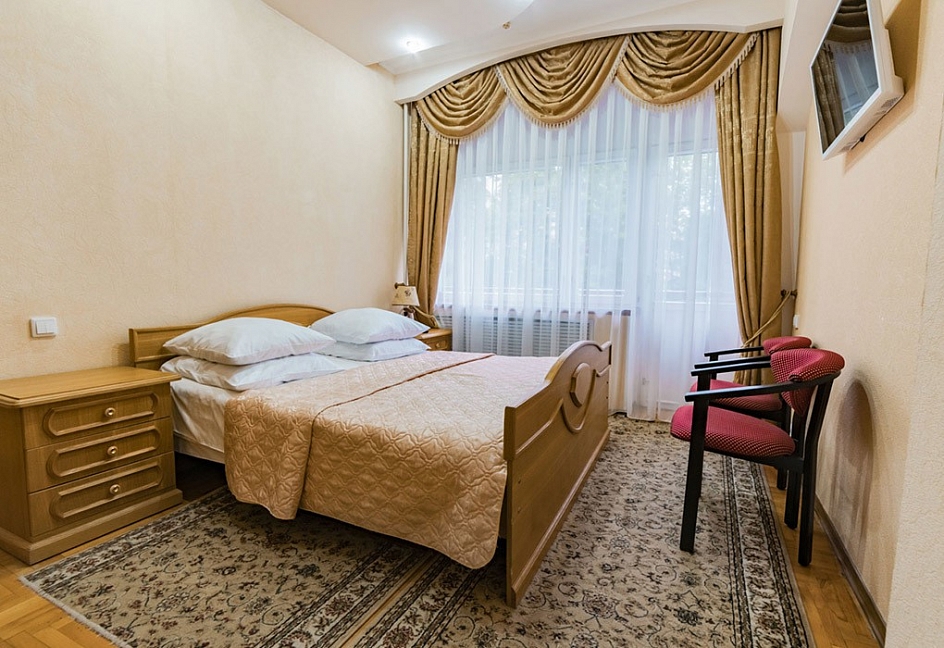 Ведомственный санаторий, поэтому коммерческую путевку в 1местный номер за несколько месяцев бронировать нужно. Открыли на территории большой бассейн. Номерной фонд категории стандарт на 2 звезды. Много процедур. Территория огорожена и пропуск только по санаторным книжкам. Молодежи мало тк одни пенсионеры ВС РФ. Кто приезжал лечить заболевания, уверен вернуться еще, для суставов и костей грязевые апликации и полное оберьывание, родоновые и сероводорлдные ванны, ЛФК, и др.. Столовая с диетическим питанием. Для любителей шашлыка, куча ресторанов и кафе внизу на Бродвее. На удивление есть хорошее место с кальяном. Такси 70 р довезет. Прям не хужем чем в Москве. Хукан плейс украинская ул 41. Кому мало лечения, или вообще без него добро пожаловать на бестыжие ванны, они за рестораном Сказки востока и пироговскими ваннами. Фильмы на территории санатория в 3D. Для лечения и оздоровления рекомендую тк бывал во многих странах мира и Израиль, Литва, Италия и Чехия.