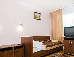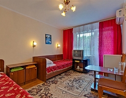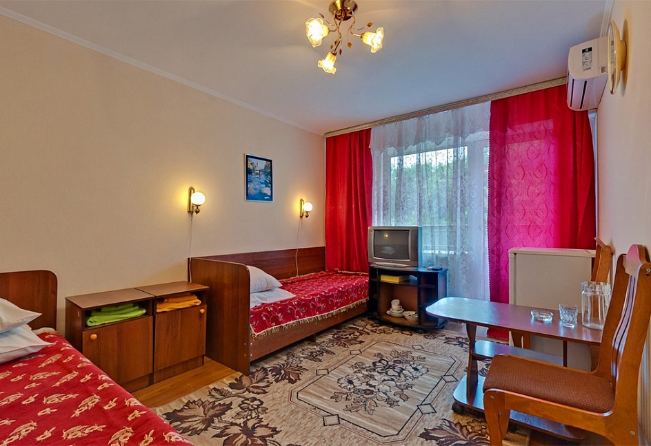 Отдыхали здесь с супругом. Заселили нас быстро, номера простенькие. Всё, что необходимо в номере было, в некоторых даже кондиционеры. Территория санатория маленькая: клумбы с цветами, лавочки. С одной стороны детский лагерь, с другой - лес.