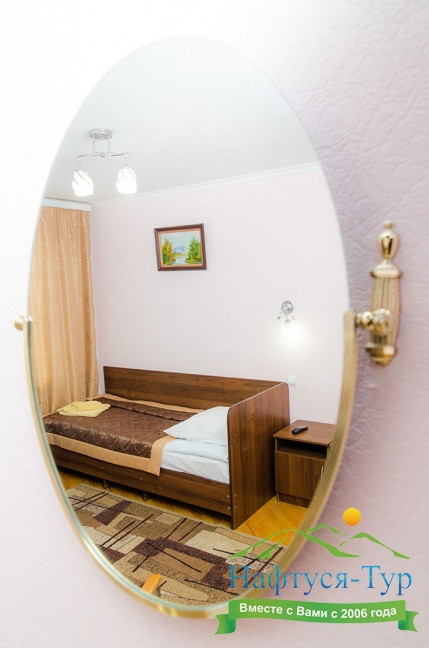 зеркало, кровати односпальные, прикроватные тумбочки, стулья, шкаф