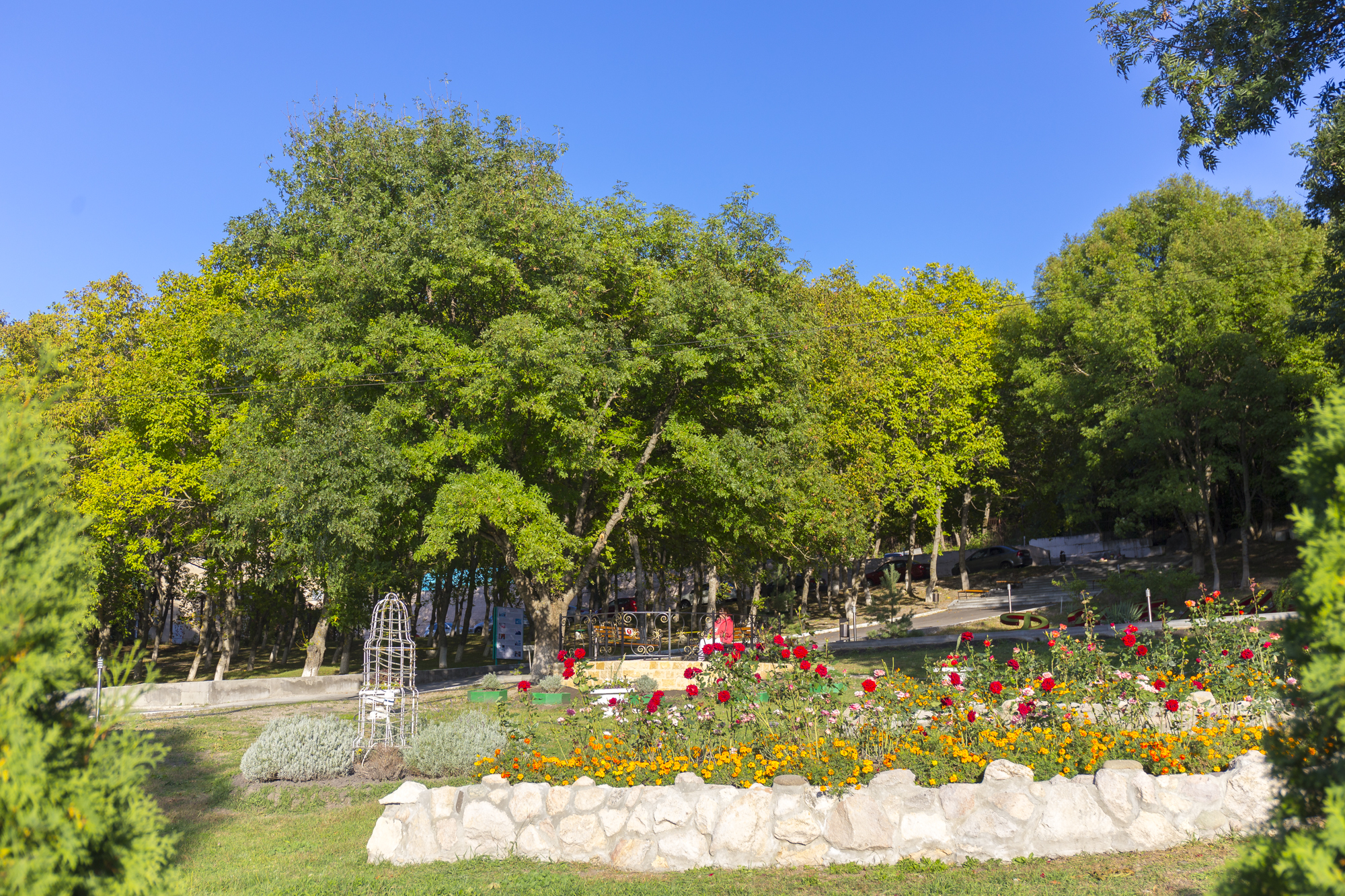 На территории санатория много клумб с цветами, много зелени, деревьев, территория ухожена (если не считать ремонт входной группы, который велся очень вяло и неаккуратно)