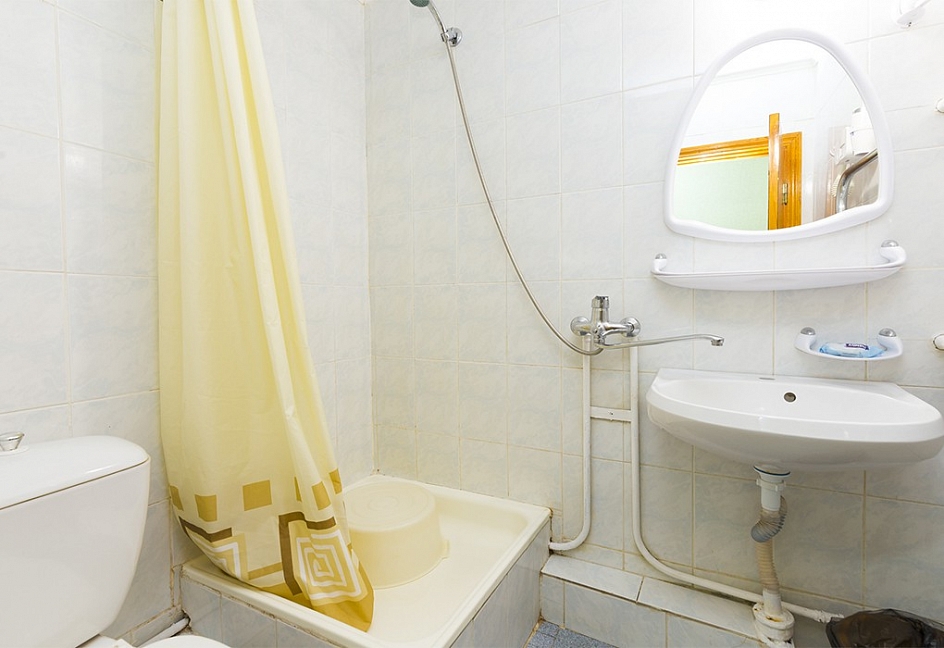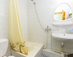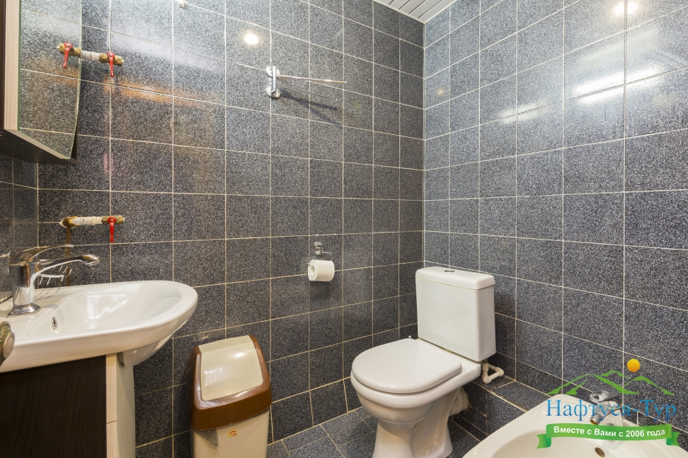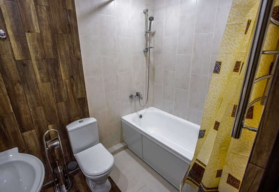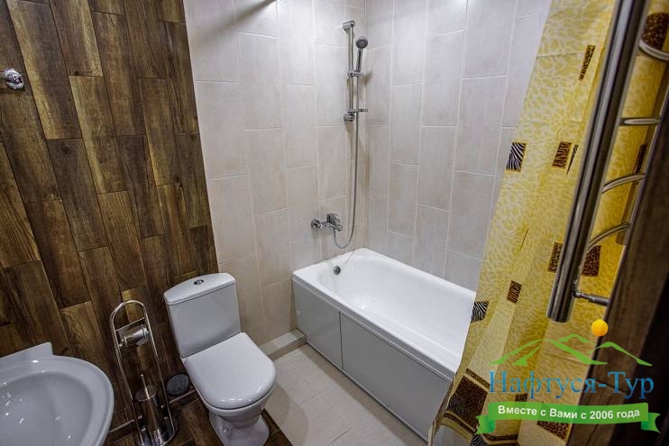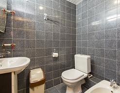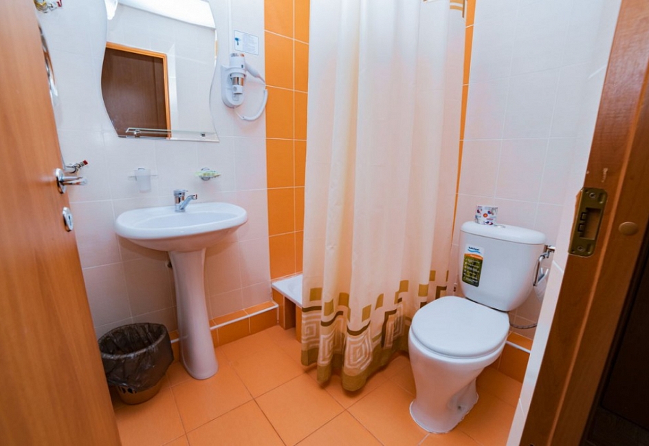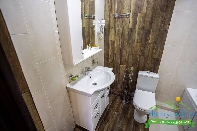 биде, с ванной/душем, тапочки, туалетные принадлежности, фен, халат