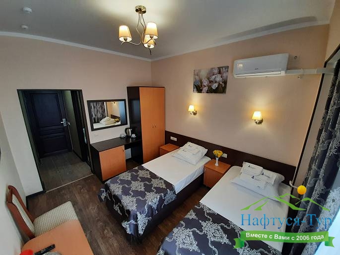 смена постельного белья (раз в 5 дней) , уборка номера (по требованию)