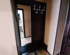 зеркало, кровати односпальные /одна двуспальная кровать, прикроватные тумбочки, столик журнальный, стулья, тумба под холодильник, шкаф, шкаф для посуды