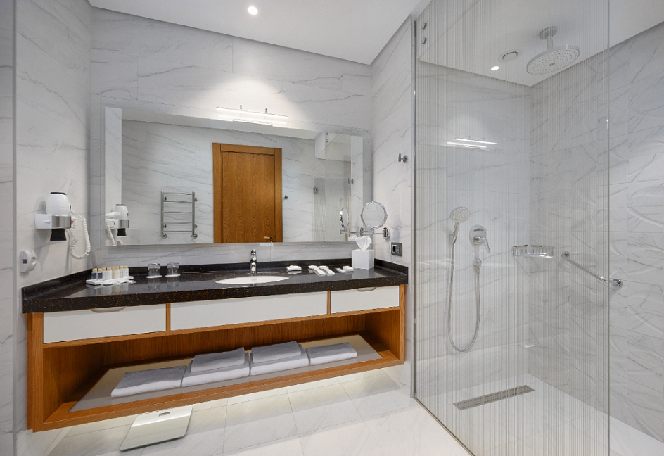 с душем, туалетные принадлежности, фен