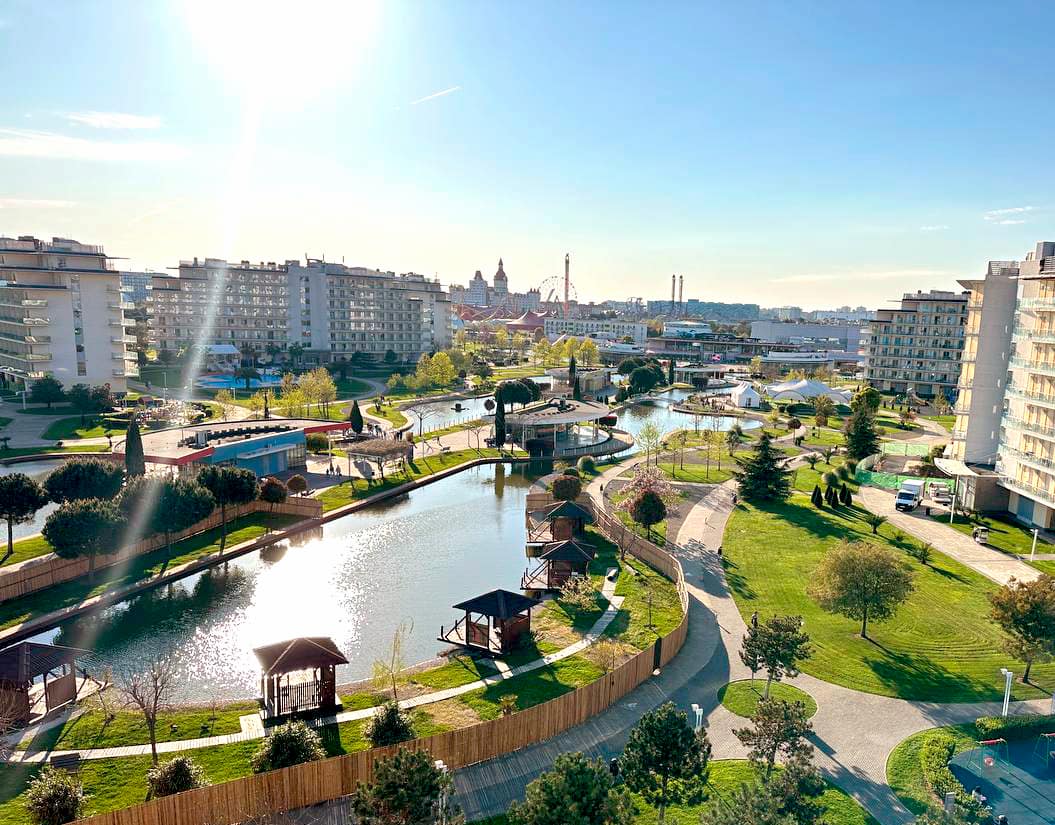 А также – ресторан и бар, конференц-зал и переговорная, прокат велосипедов и спортивного оборудования, охраняемая парковка, спа-центр с аква-зоной и аттракционами, термальным комплексом, крытым и открытым бассейнами и тренажёрным залом.