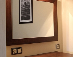 вешалка, зеркало, кровать двуспальная, прикроватные тумбочки, стол, стулья, шкаф
