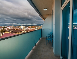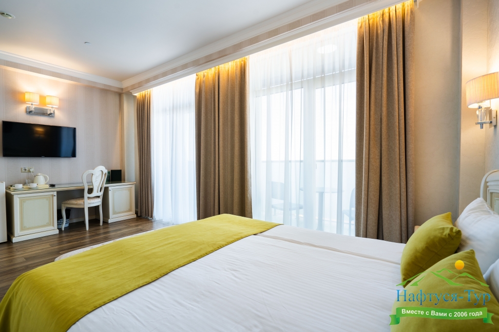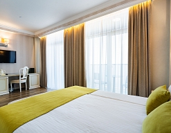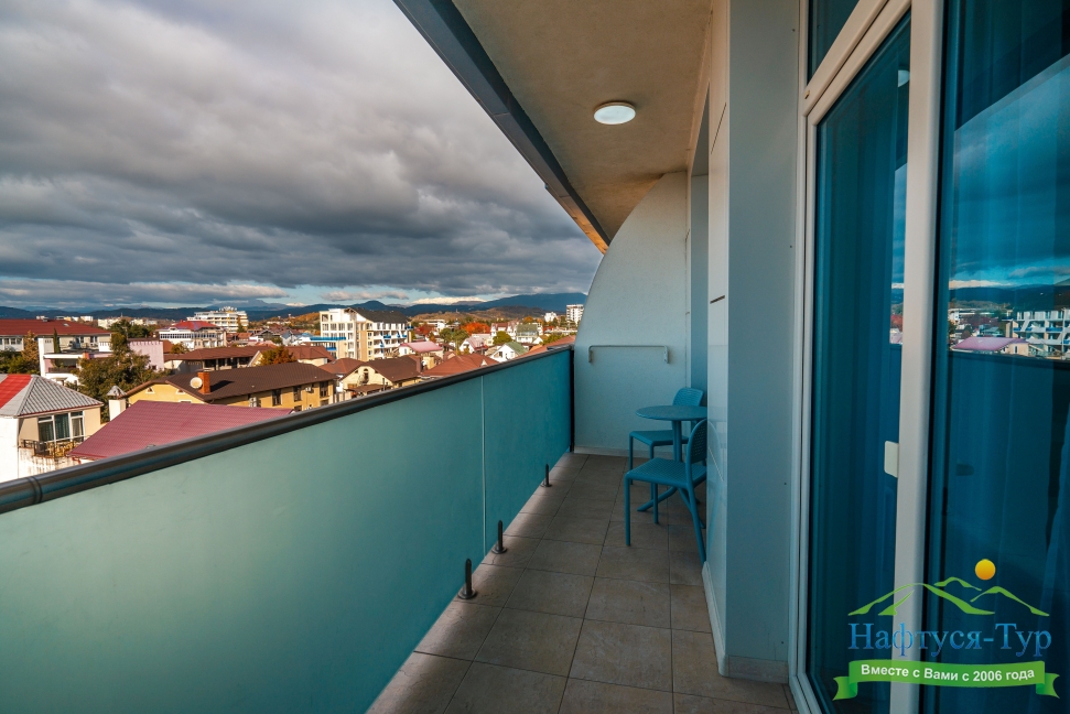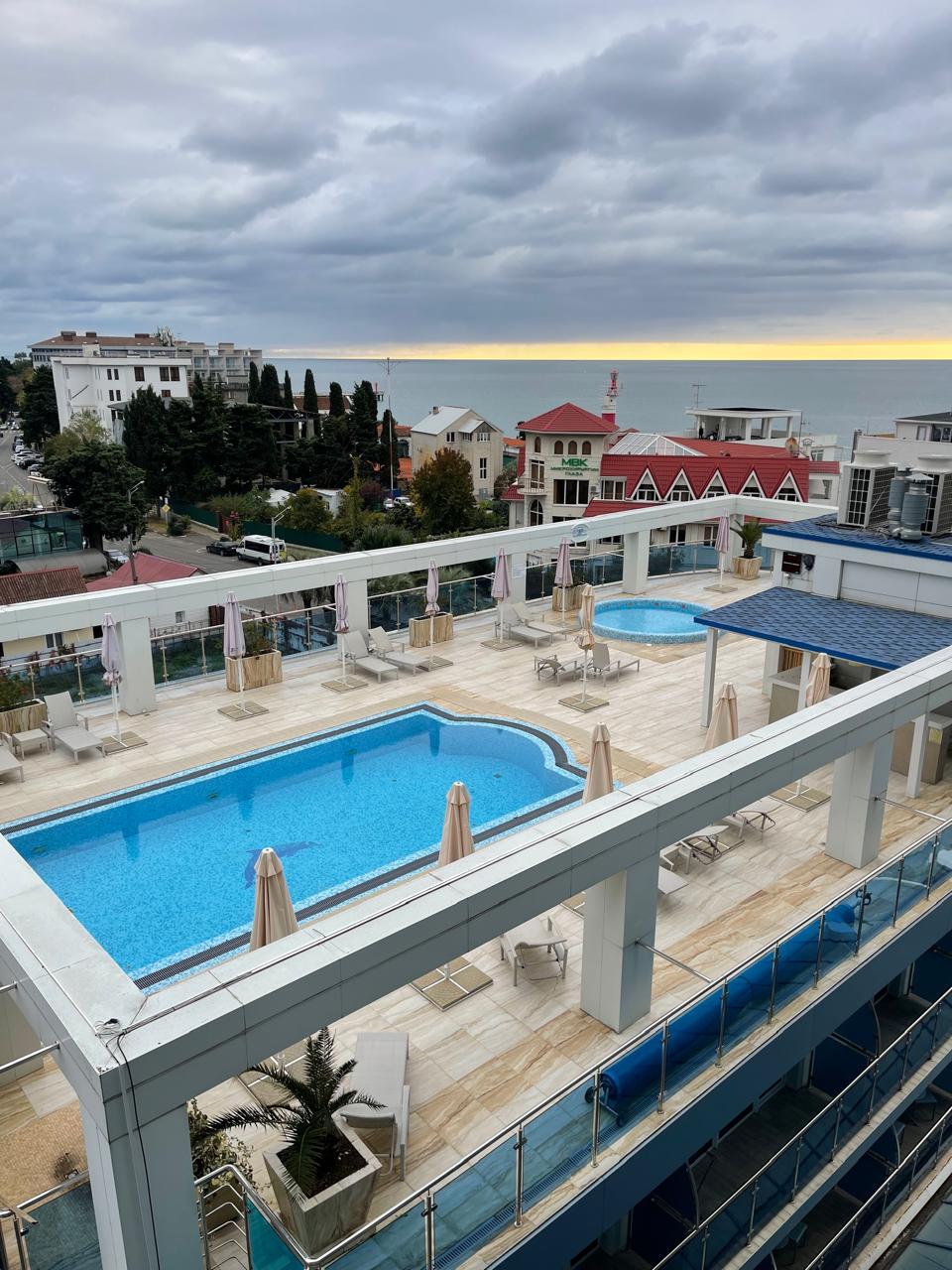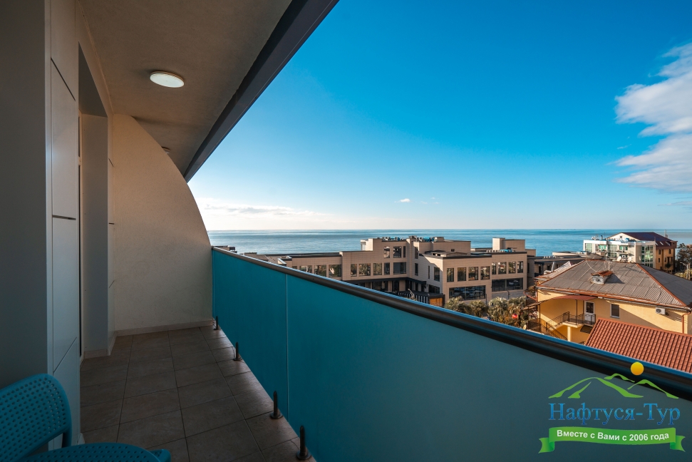 В комнате было 2 больших балкона, что очень приятно, панорамные окна с видом на море, к сожалению, сейчас там проходит стройка и вид немного портится