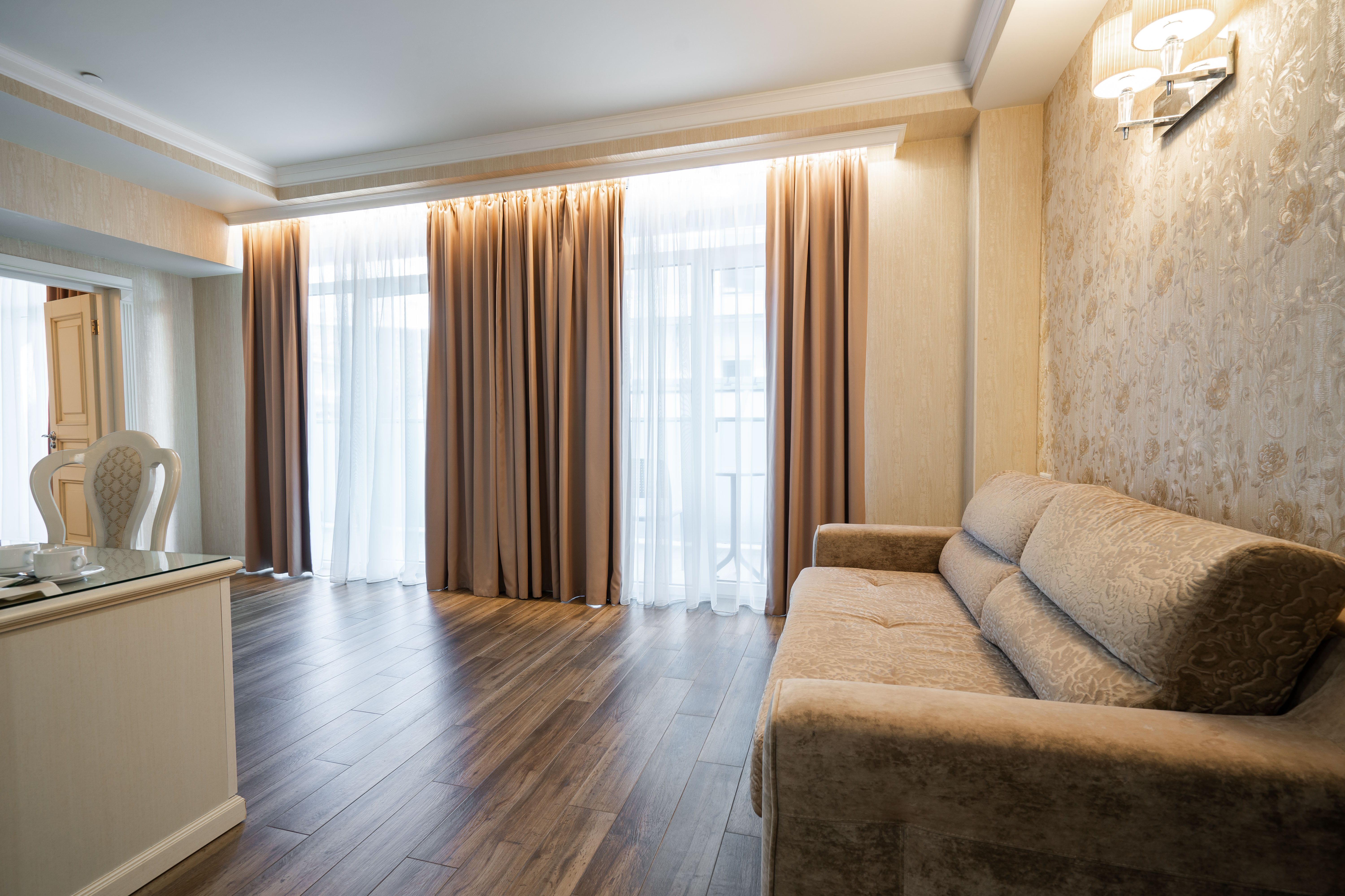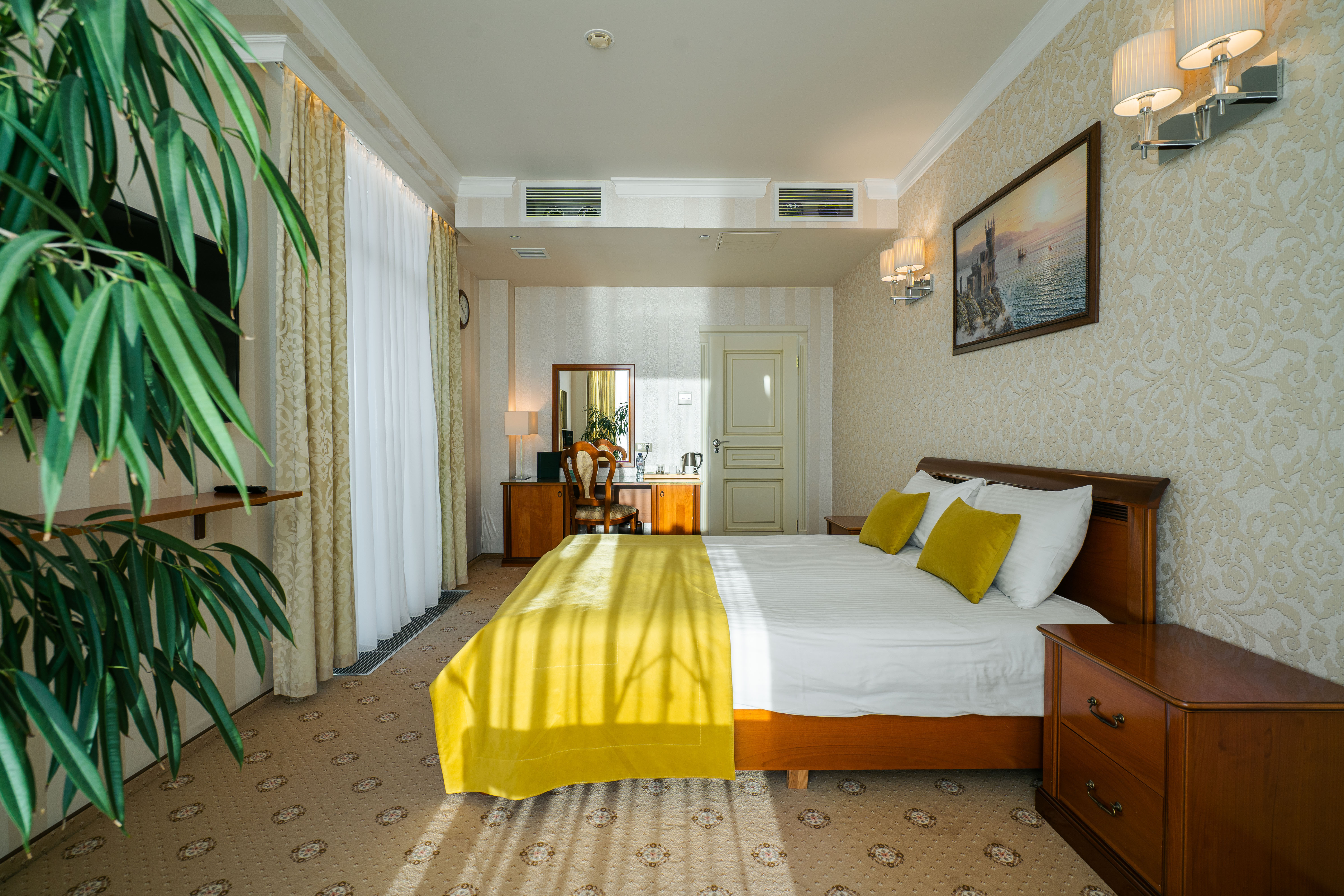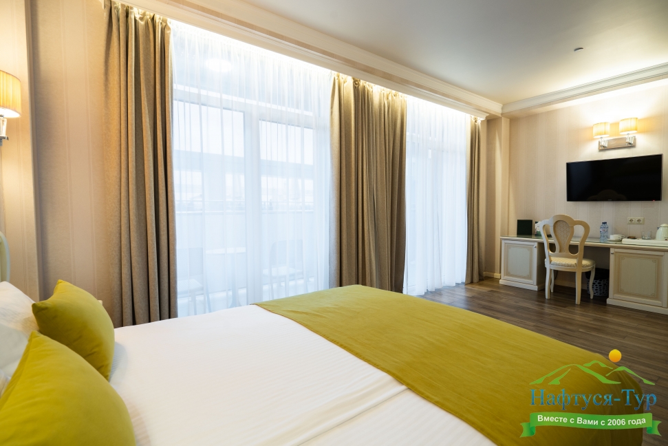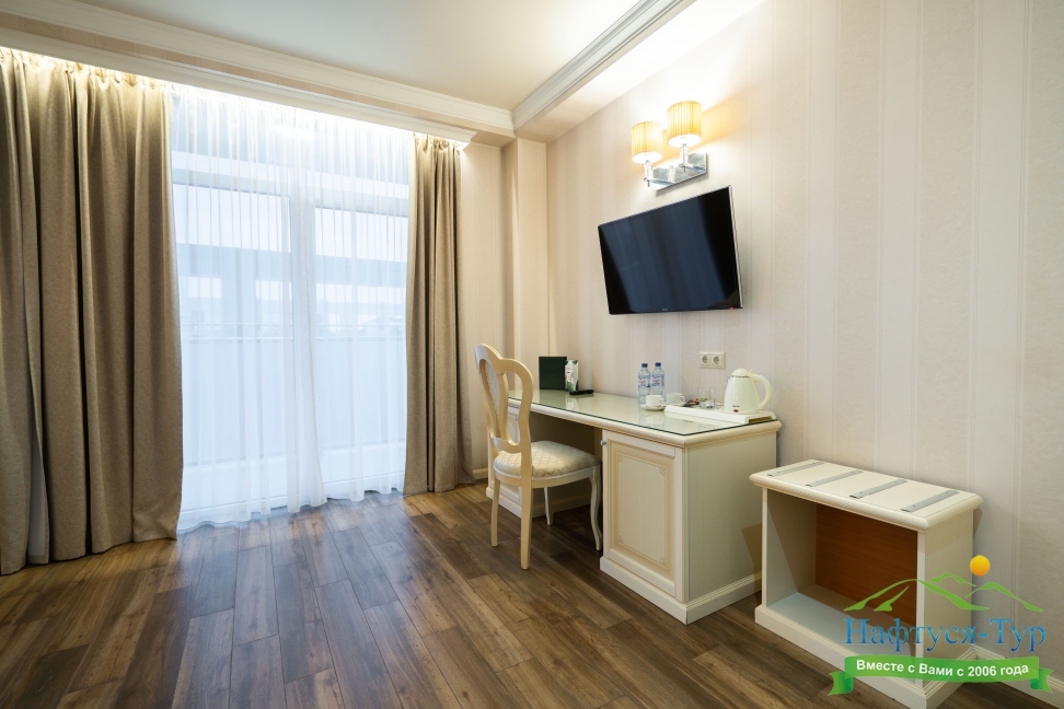 В комнате было 2 больших балкона, что очень приятно, панорамные окна с видом на море, к сожалению, сейчас там проходит стройка и вид немного портится