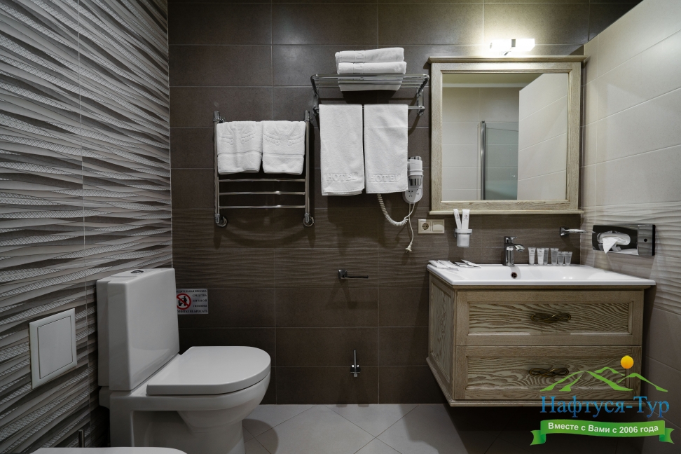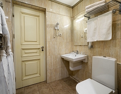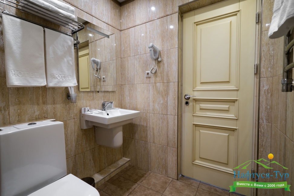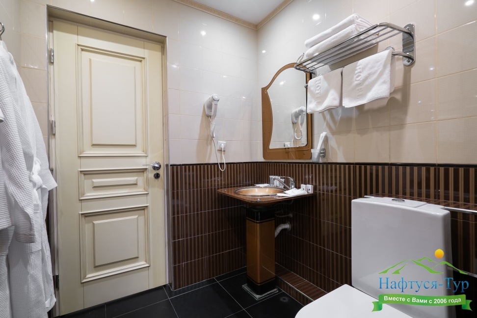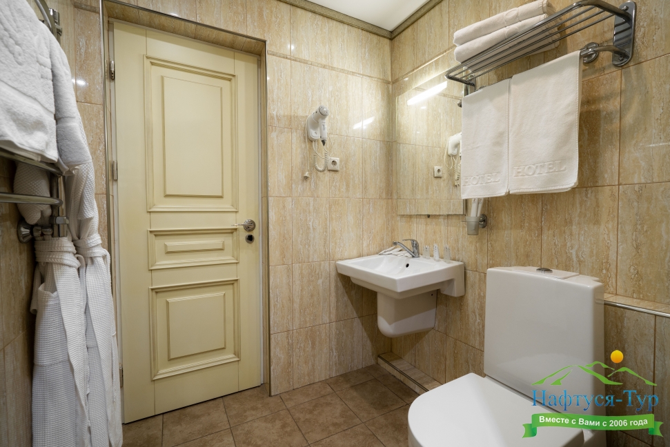 биде, с ванной/душем, тапочки, туалетные принадлежности, фен, халат