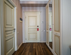 вешалка, зеркало, кровати односпальные /одна двуспальная кровать, прикроватные тумбочки, стол, стулья, шкаф